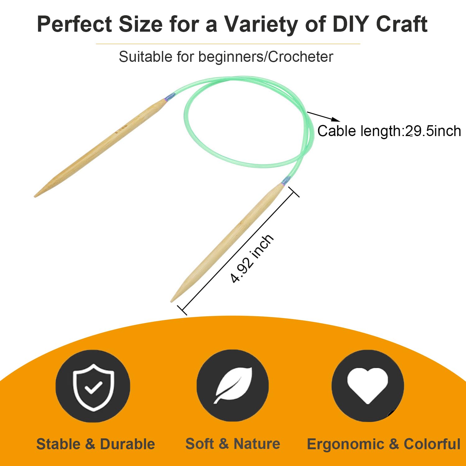 - Eco-Friendly Material: Our circular knitting needles are crafted from high-quality bamboo wood,are lightweight for comfort, smooth&longevity. The bamboo is natural material and cable colorful.The unique natural of bamboo add a touch of elegance to the knitting experience.
