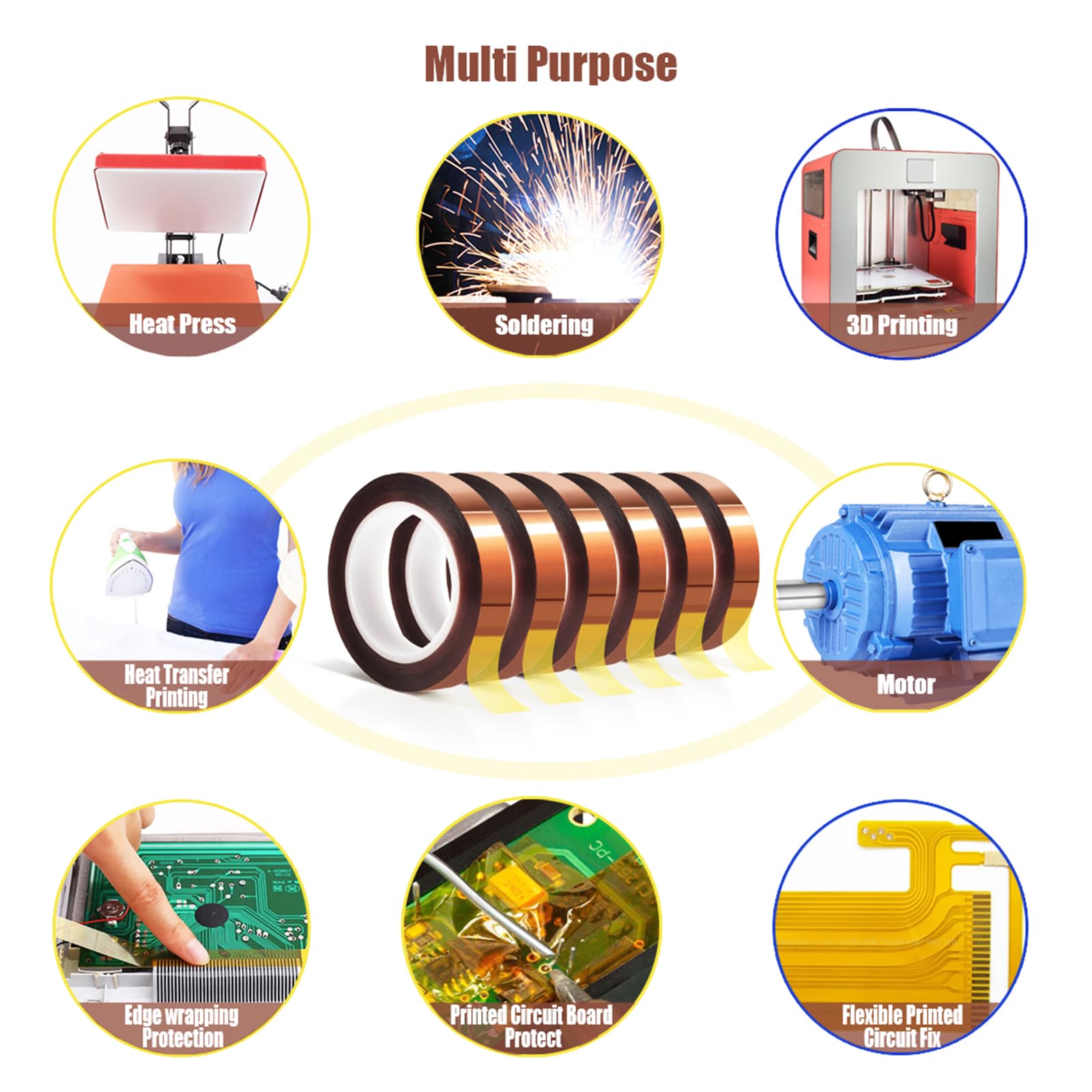 - High temperature tape features: Width: 10mm/0.39inch; Length: 16m /52ft. Heat resistance: 250°C.Color: Mainly tawny.