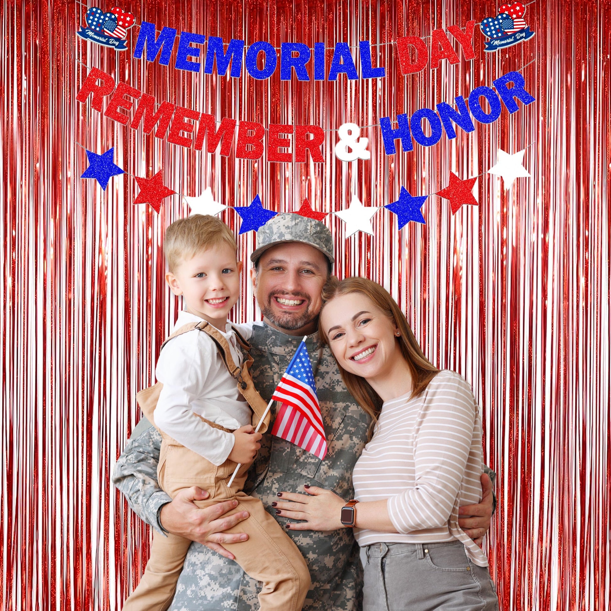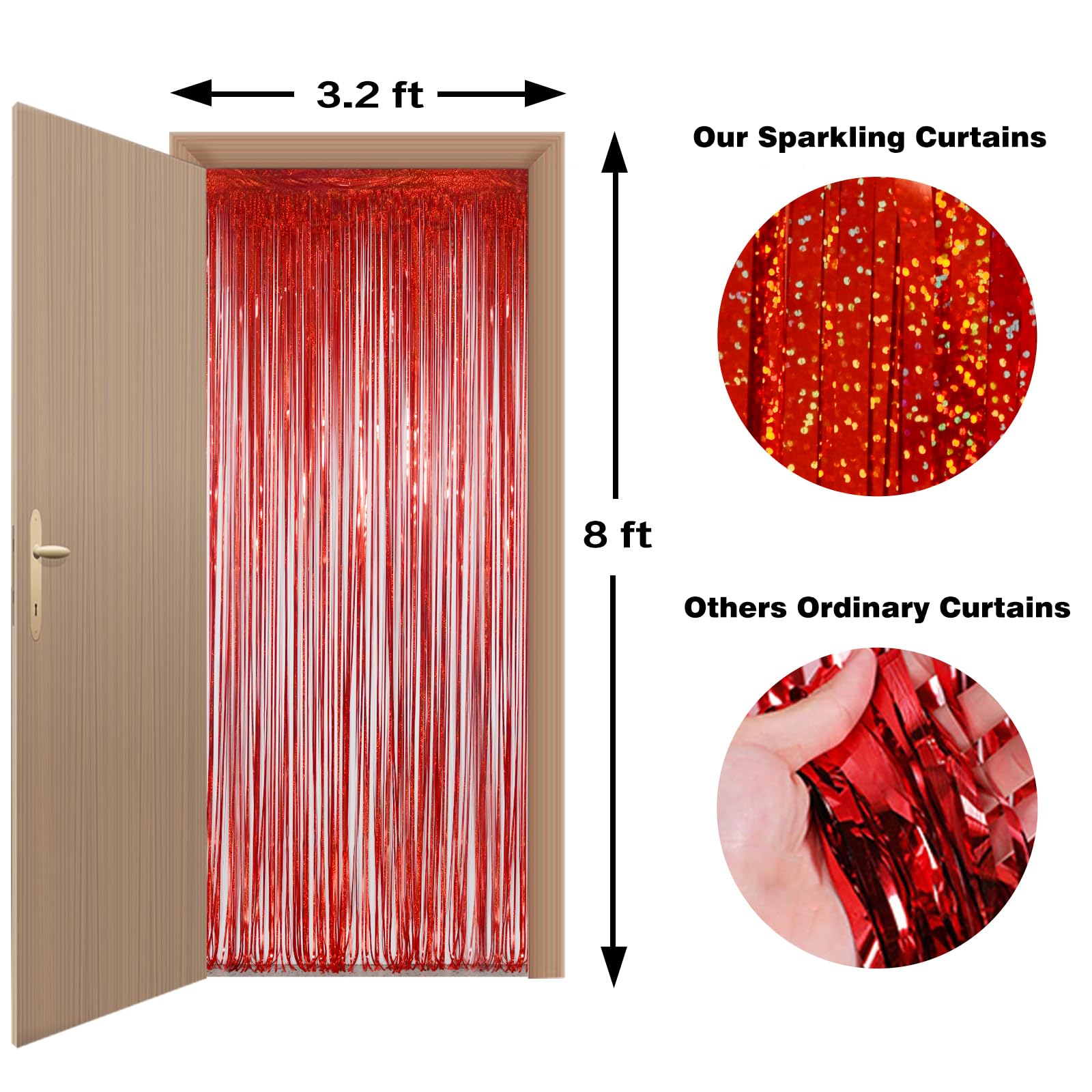 2 Pack Red Tinsel Foil Fringe Curtains Backdrop, Sparkle Tinsel Backdrop Curtains for Memorial Day Decorations Graduation Class of 2025 Birthday Party Decorations