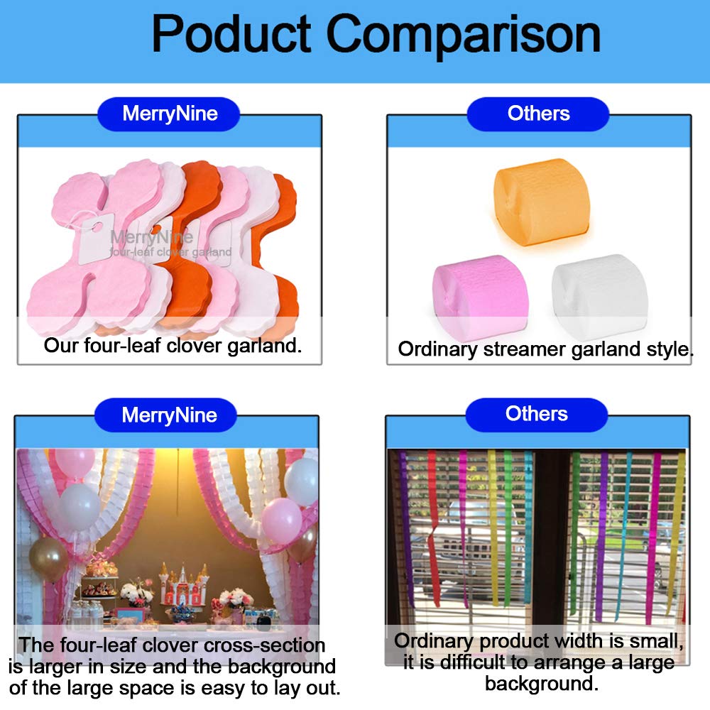 - PREMIUM QUALITY AND REUSABLE - MerryNine four-Leaf clover garlands are made of color paper which is hardly fade in sunshine. Keep good shape in breeze. After the celebration, you can easily fold them back in minutes