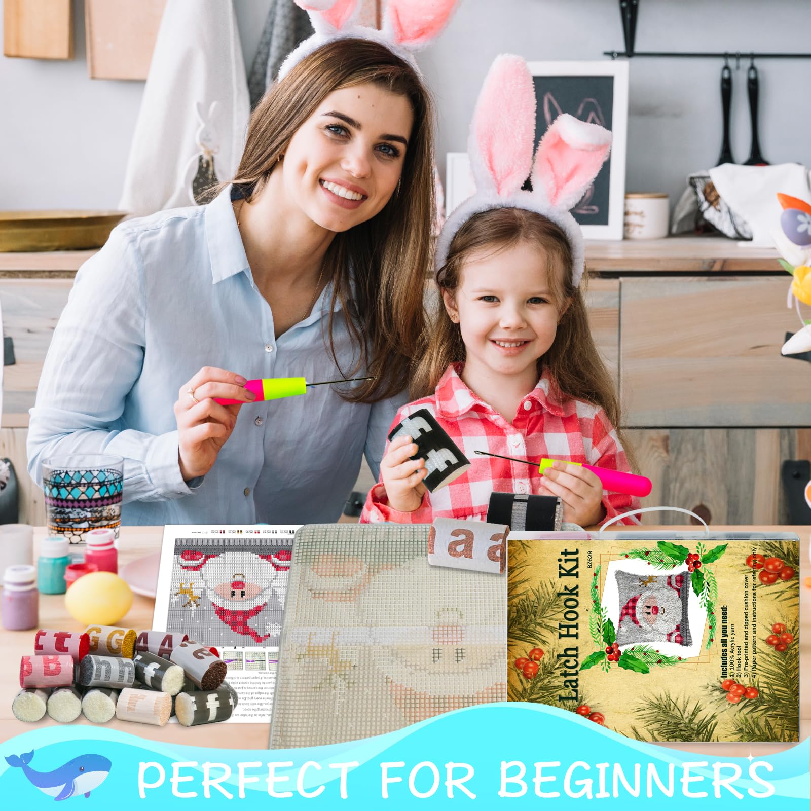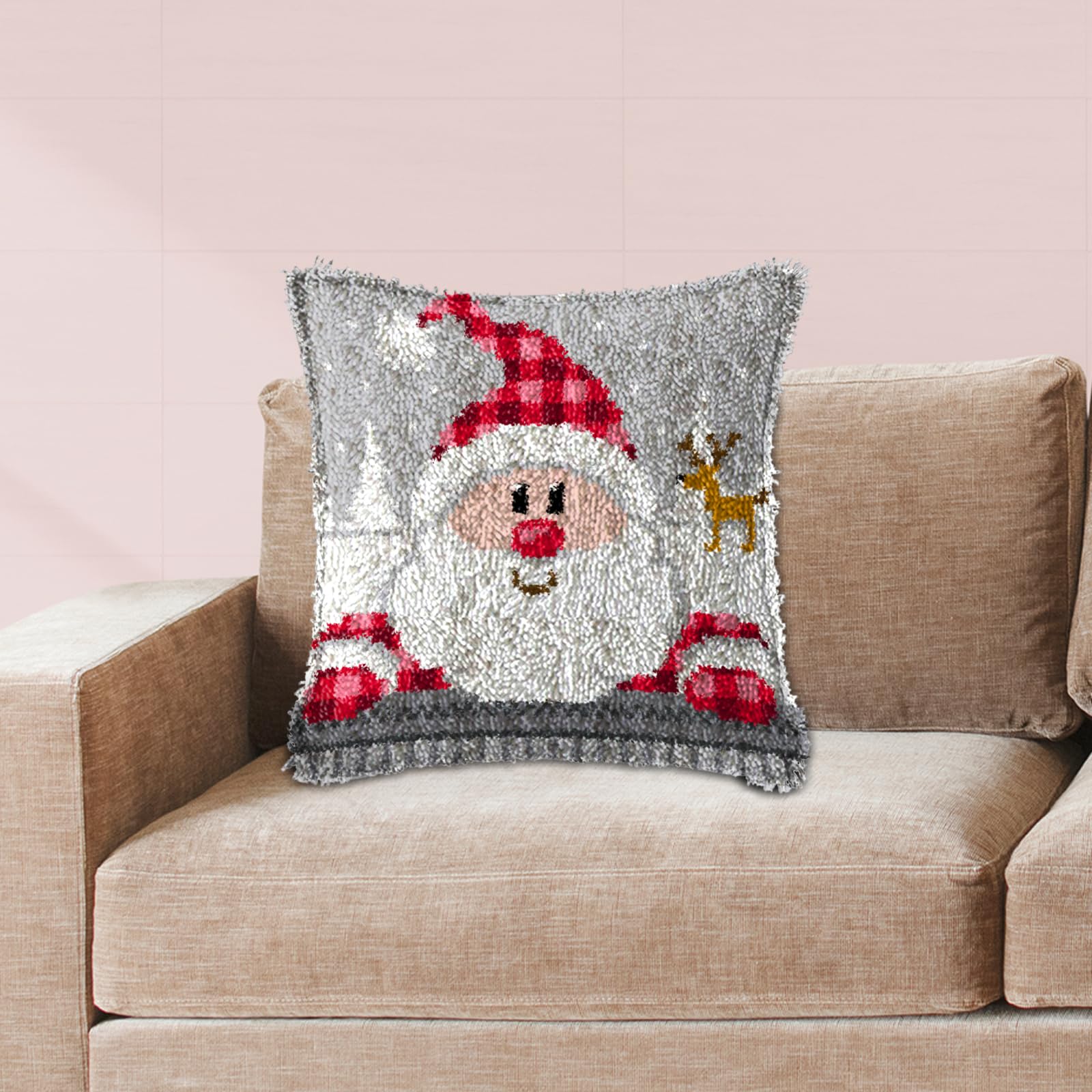 Latch Hook Kit, Christmas Latch Hook Kits for Adults DIY Decorative Pillowcase Embroidery Cross Stitch Arts Craft for Home Sofa Furniture 17X17inch Father Christmas