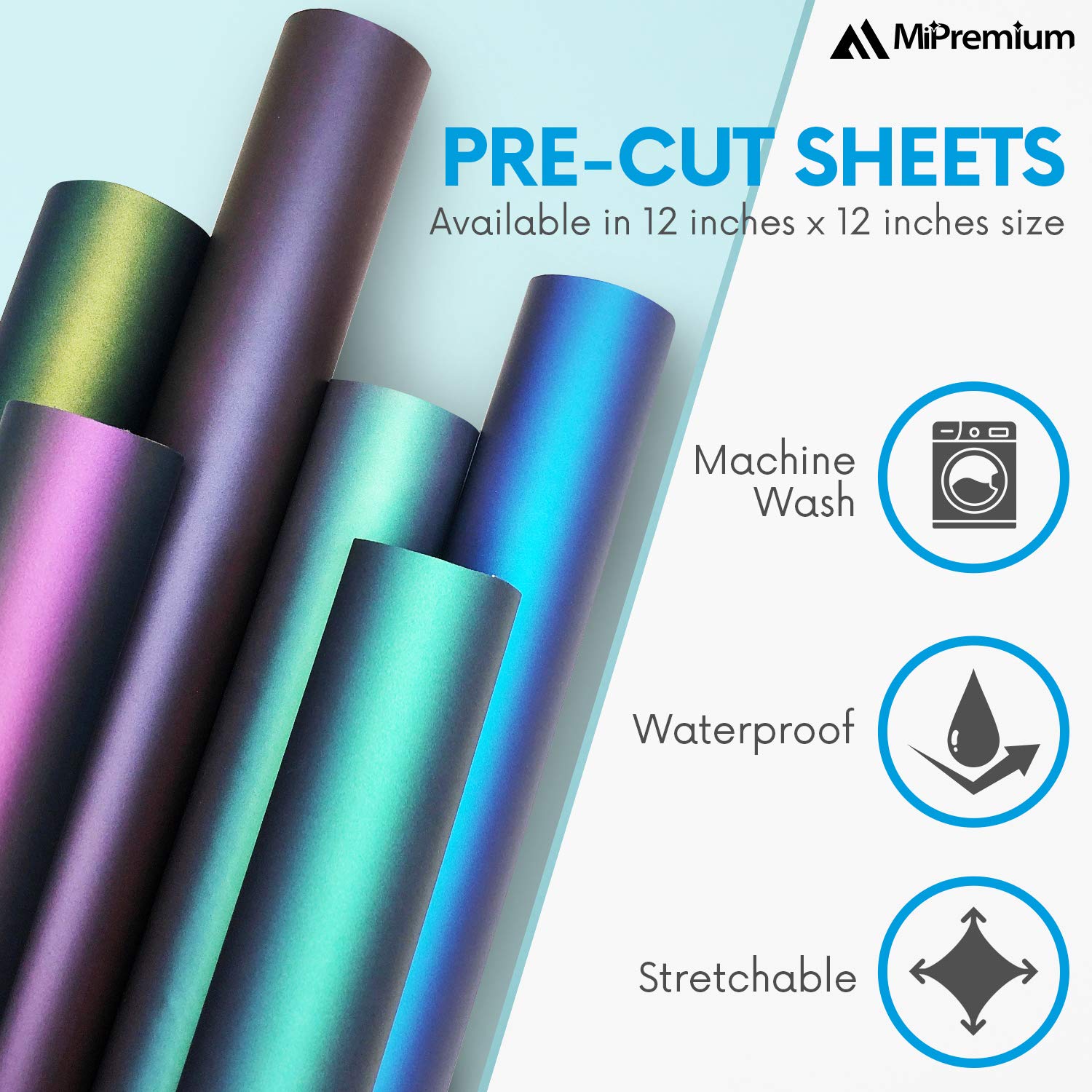- ►Thin but strong & highly durable: MiPremium assorted chameleon gradient change color vinyl is made thinner to deliver extra stretch & flexibility without compromising on the durability of the HTV vinyl. This heat transfer film is design to endure rugged use & not peel, crack or fade. Its extra thin design offers great elasticity & stretch allowing fabrics to stretch through natural movements. It preserves shape and tonality of colour even after a long period & repeated washes.