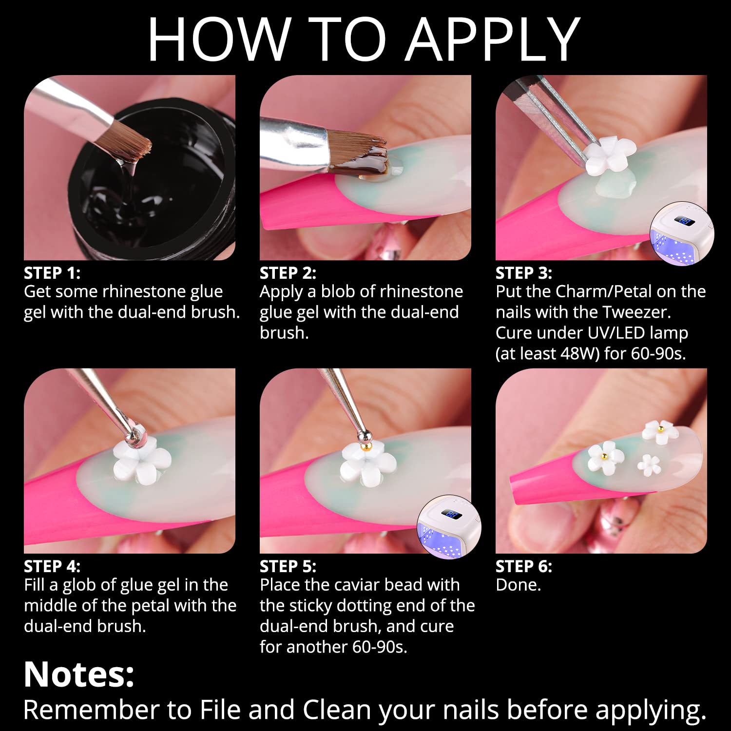 - WHAT YOU WILL RECEIVE -- The package contains 3 boxes of ornaments for manicure with necessary dotting pen and tweezer. The embellishment set includes bling starry AB gems for nails, AB white flatback pearls, metal ball chain, colorful 3D blossom, 3D aurora butterfly / bow / bear / flower, etc.