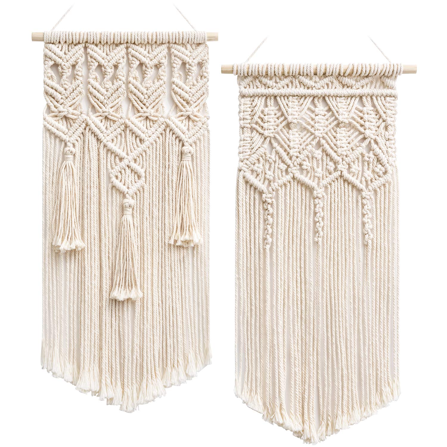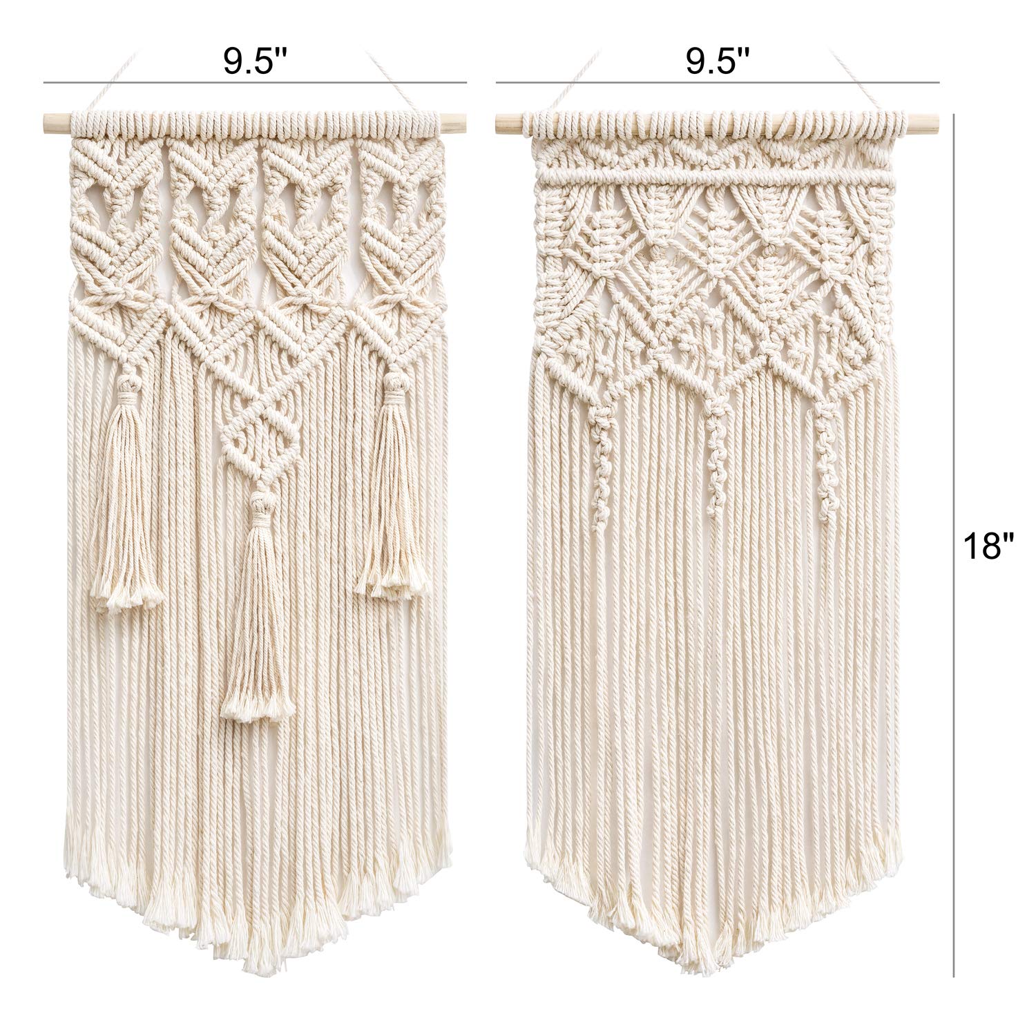 2 Pcs Macrame Woven Wall Hanging Boho Chic Geometric Art Decor - Beautiful Bedroom Nursery Apartment Home Decoration, Gift for Girls Adults Birthday Christmas, Small Size 18" L x 9.5" W