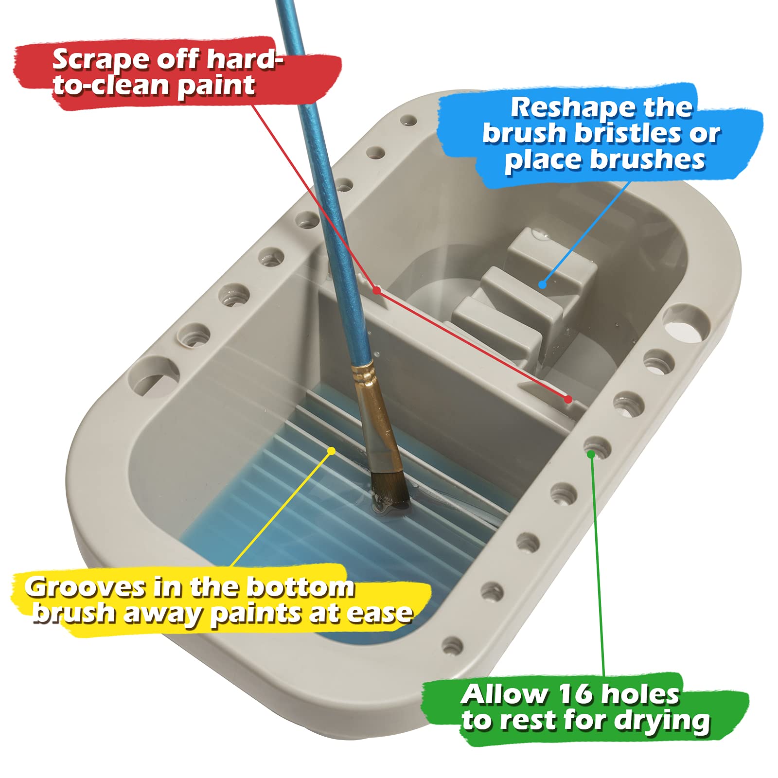 Paint Brush Cleaner, Paint Brush Holder and Organizers with Palette for Acrylic, Watercolor, and Water-Based Paints (Grey)