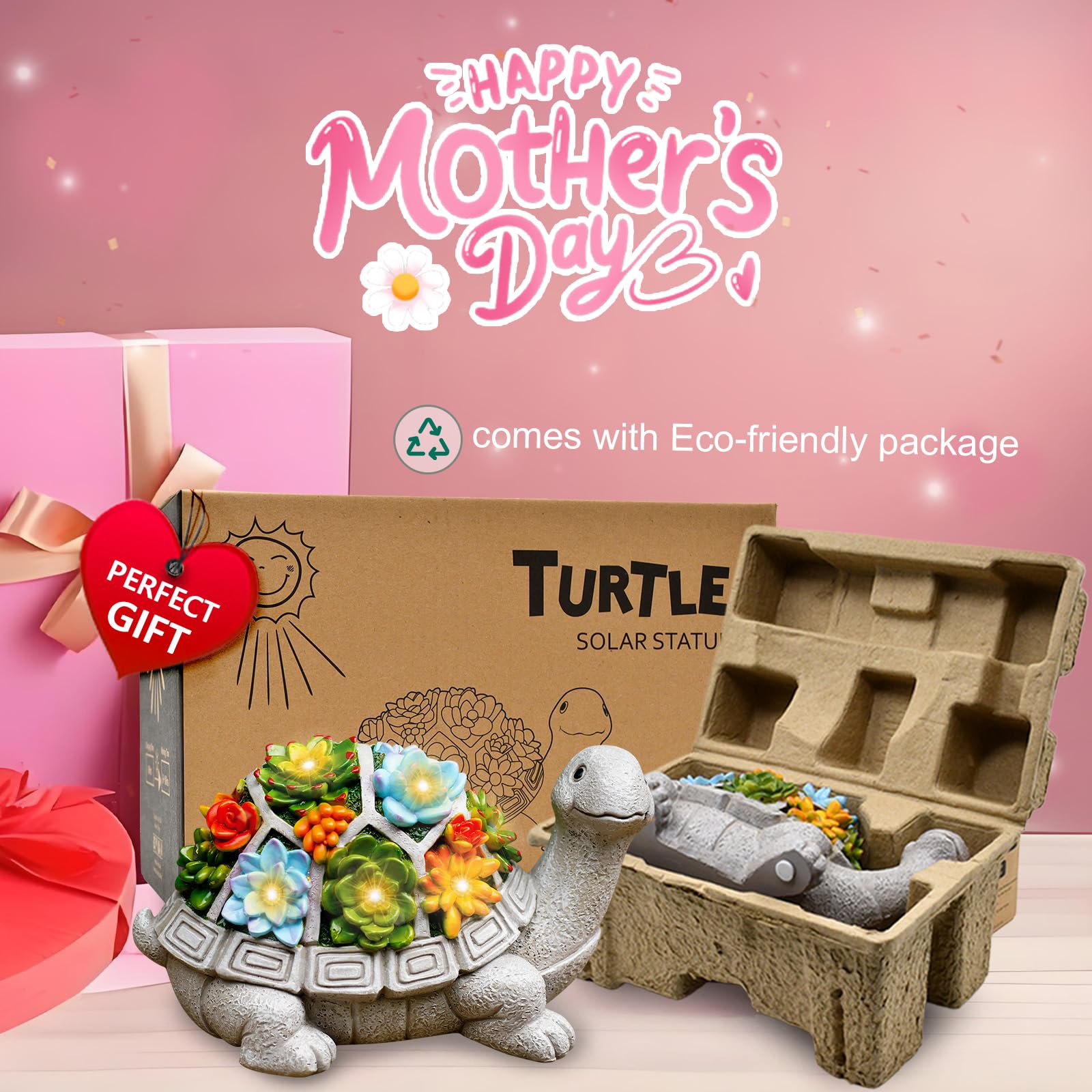 Solar Garden Outdoor Statues Turtle with Succulent and 7 LED Lights - Lawn Decor Tortoise Statue for Patio, Balcony, Yard Ornament - Unique Housewarming Gifts