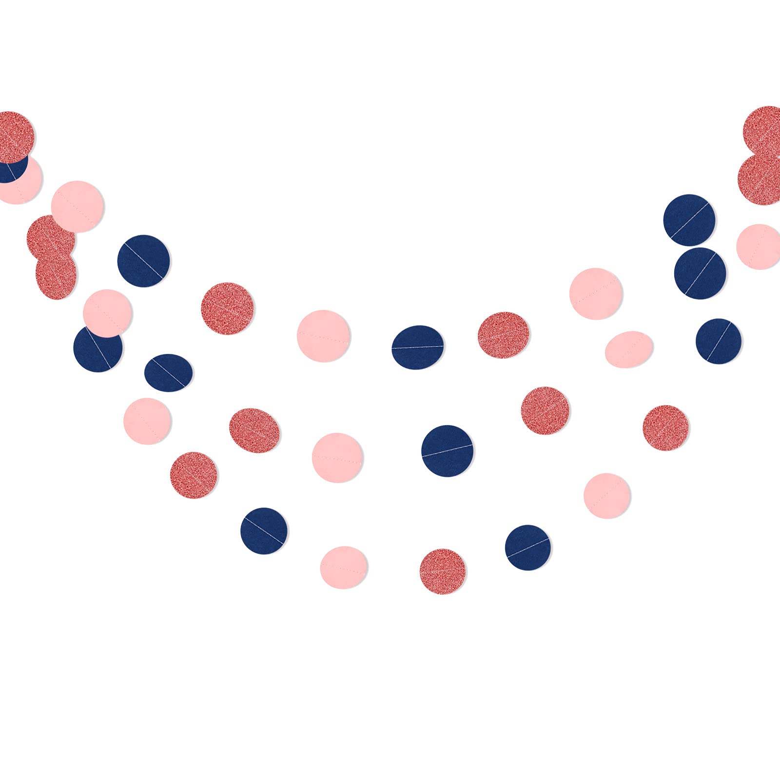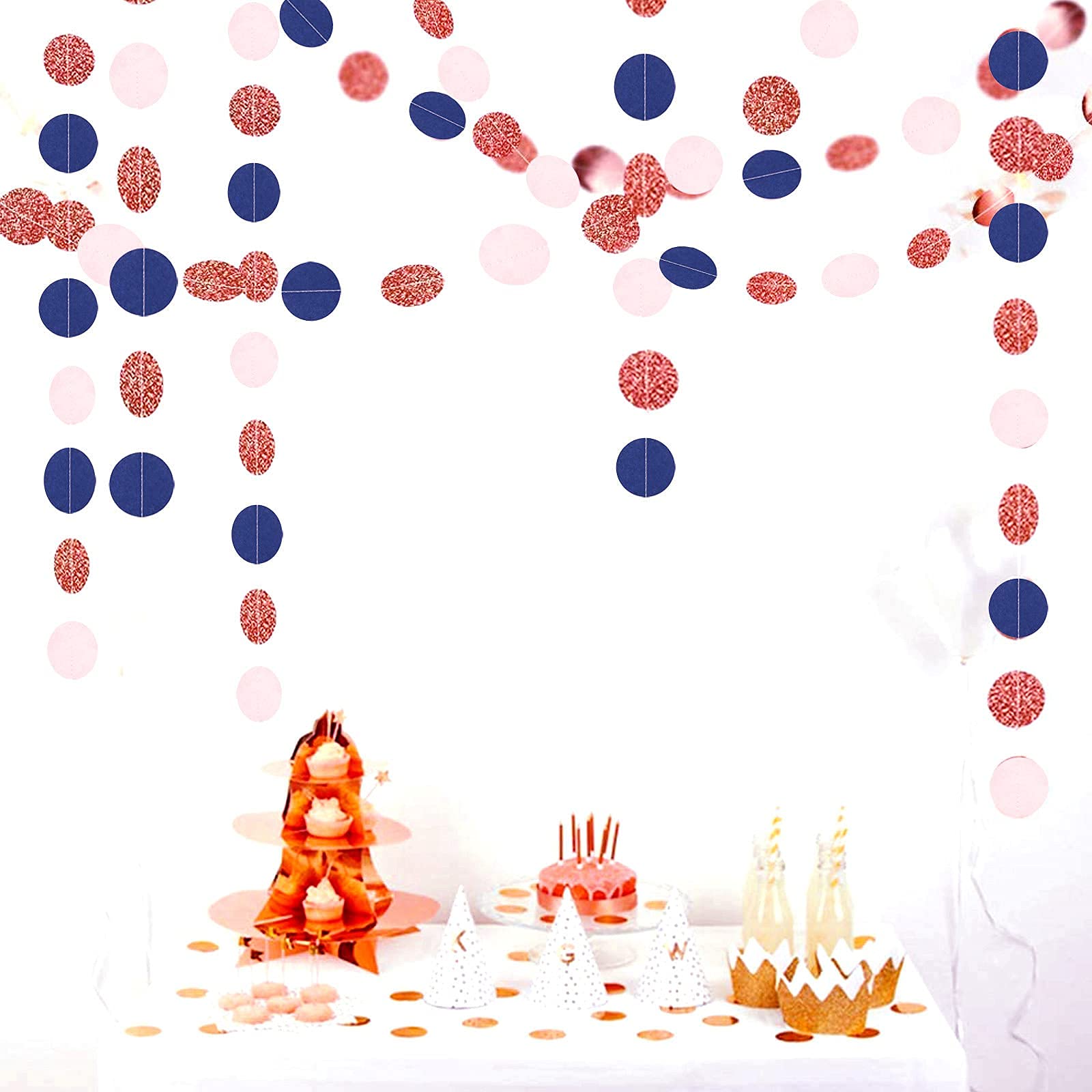 - 【 Easy to assemble 】Just open the package to hang it directly because they have been sewn together with double sturdy thread, which can really save your time and energy.The Navy Blue Pink Rose Gold garland can be hanging from ceilin,above a table, under the verandah, or from branches in trees .