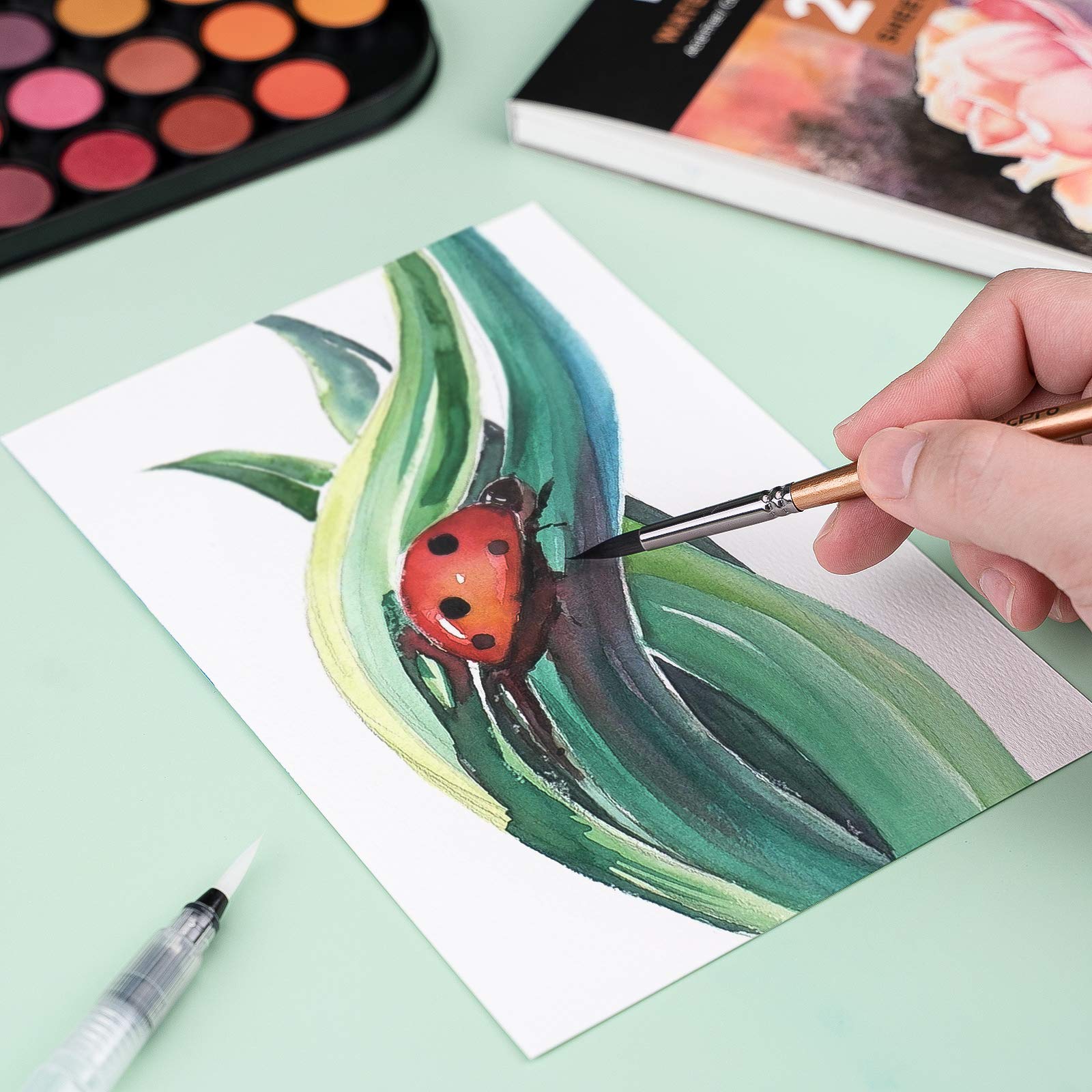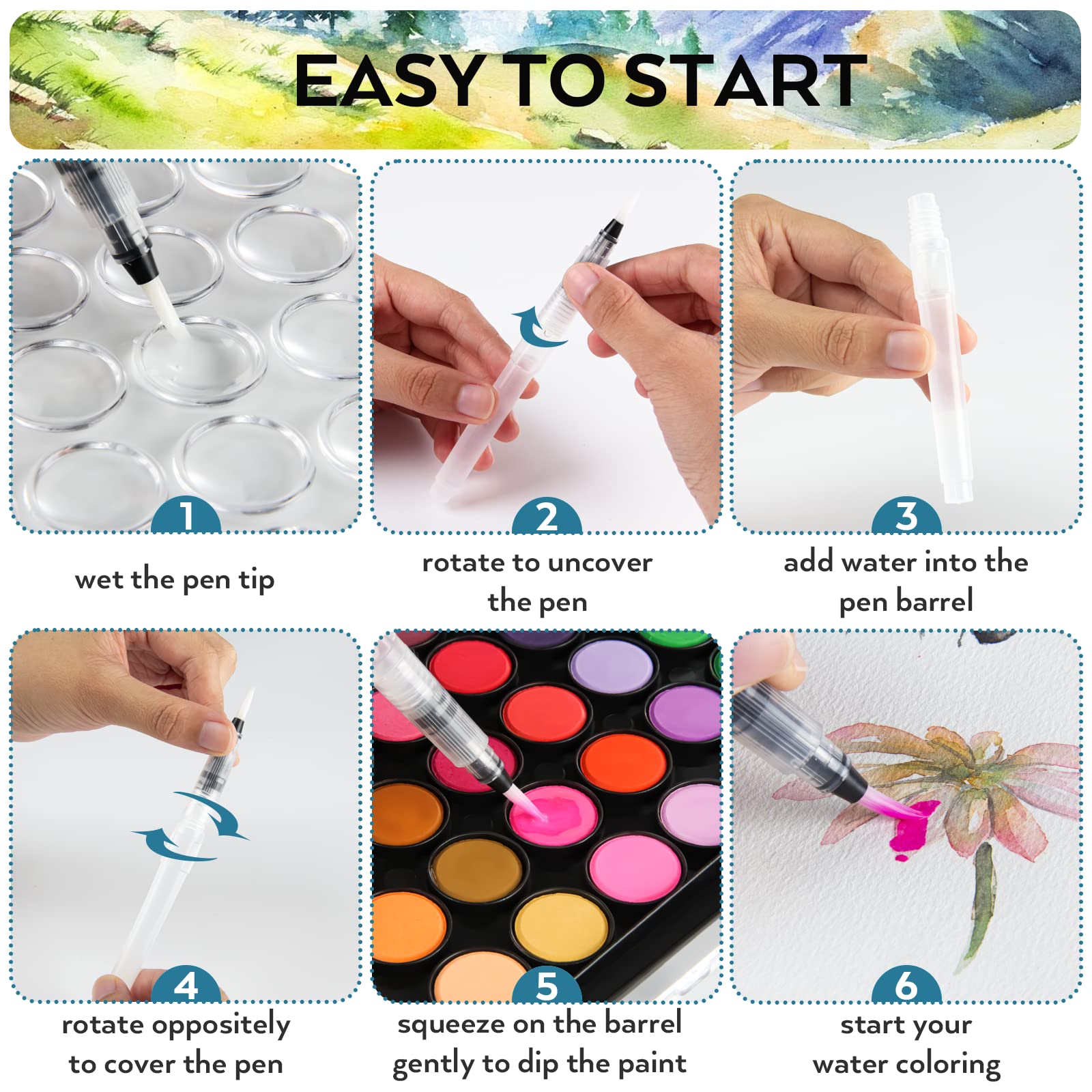 - Handy Art Set: Take our watercolor pan like a notepad.This art set come with 48 colors solid water color paints ,3 pcs painting brushes and a 1 premium refillable water brush pen,the detachable lid can also be transformed into a palette and a brush storage slot. Start painting just with few drops of water.