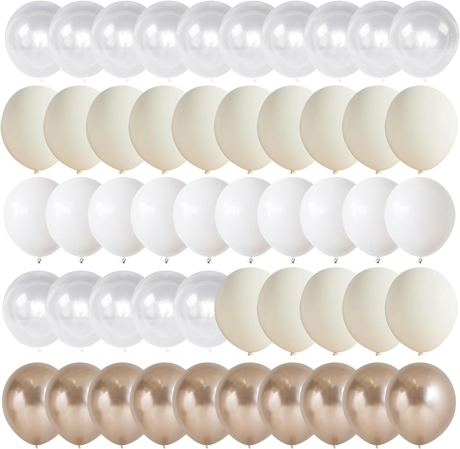 Nude White Gold Balloons, 60PCS Metallic Champagne Gold Cream White Clear Balloon White Sand Blush Beige Transparent Party Balloons for Birthday Boho Wedding Anniversary Engagement Hen Decorations