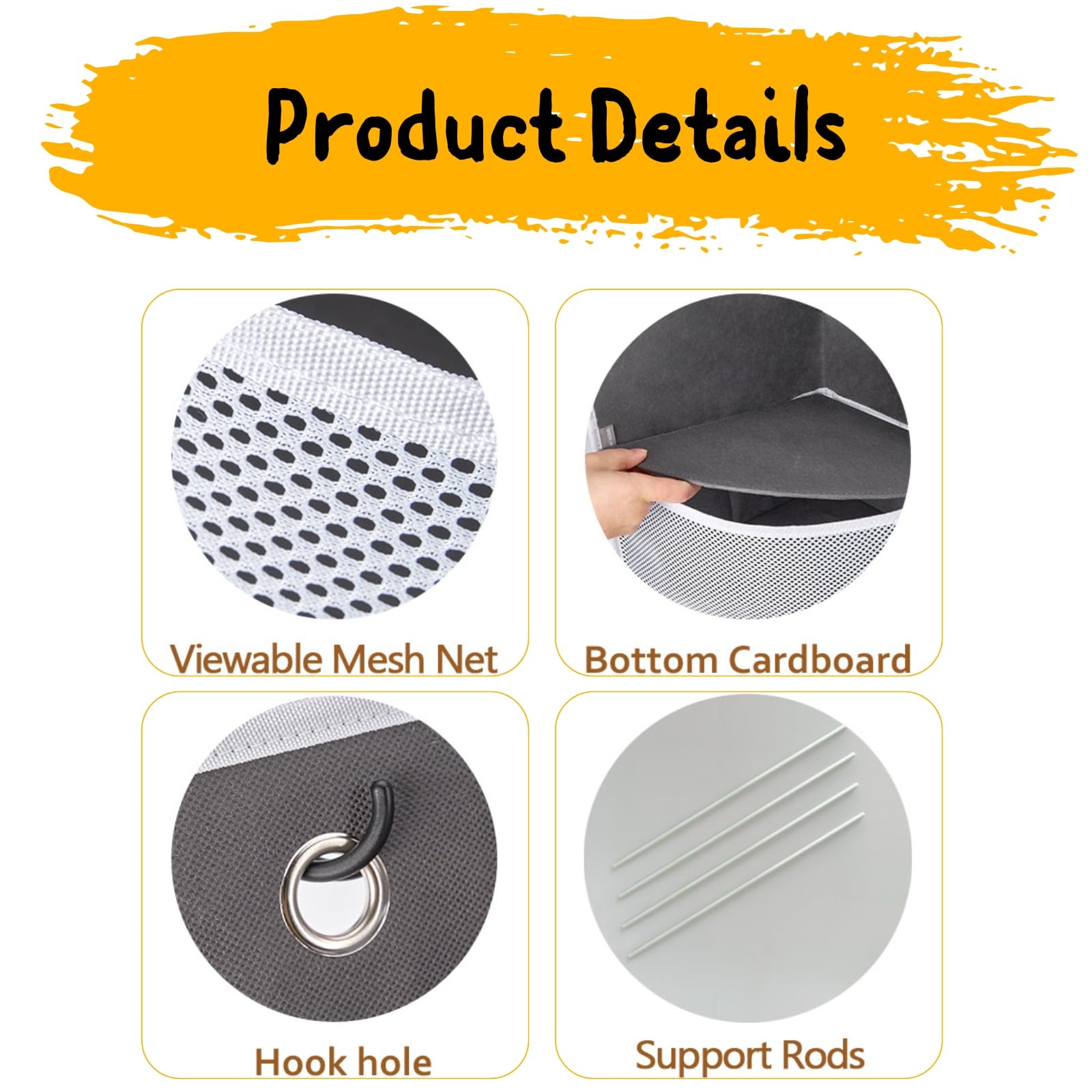 - 【SEE-THROUGH MESH POCKETS】The hanging bin has see-through mesh pockets which let you clearly know what items are on each layer, making it easy to get what you need. What's included: 1 Hanging organizer and 4 cardboards, 4 support rods, 2 Screws
