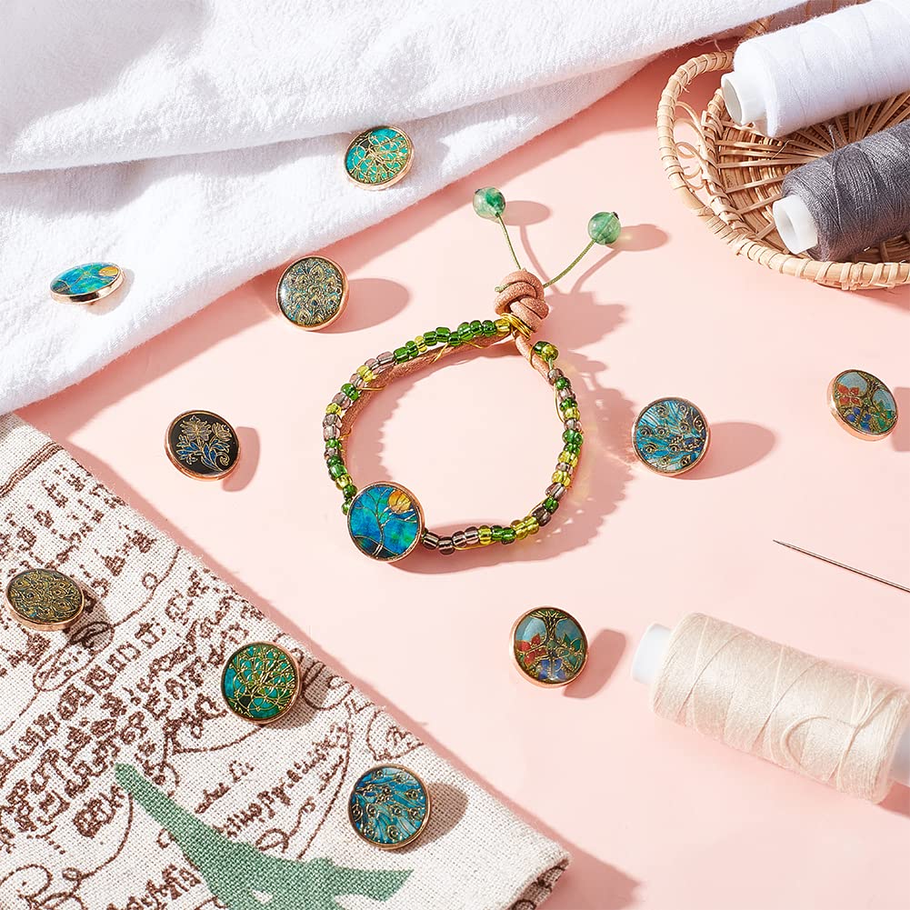 24pcs 6 Styles Enamel Shank Buttons - 18mm Alloy, Tree Theme, Green, Gold, Vintage, Round, for DIY Sewing Crafts