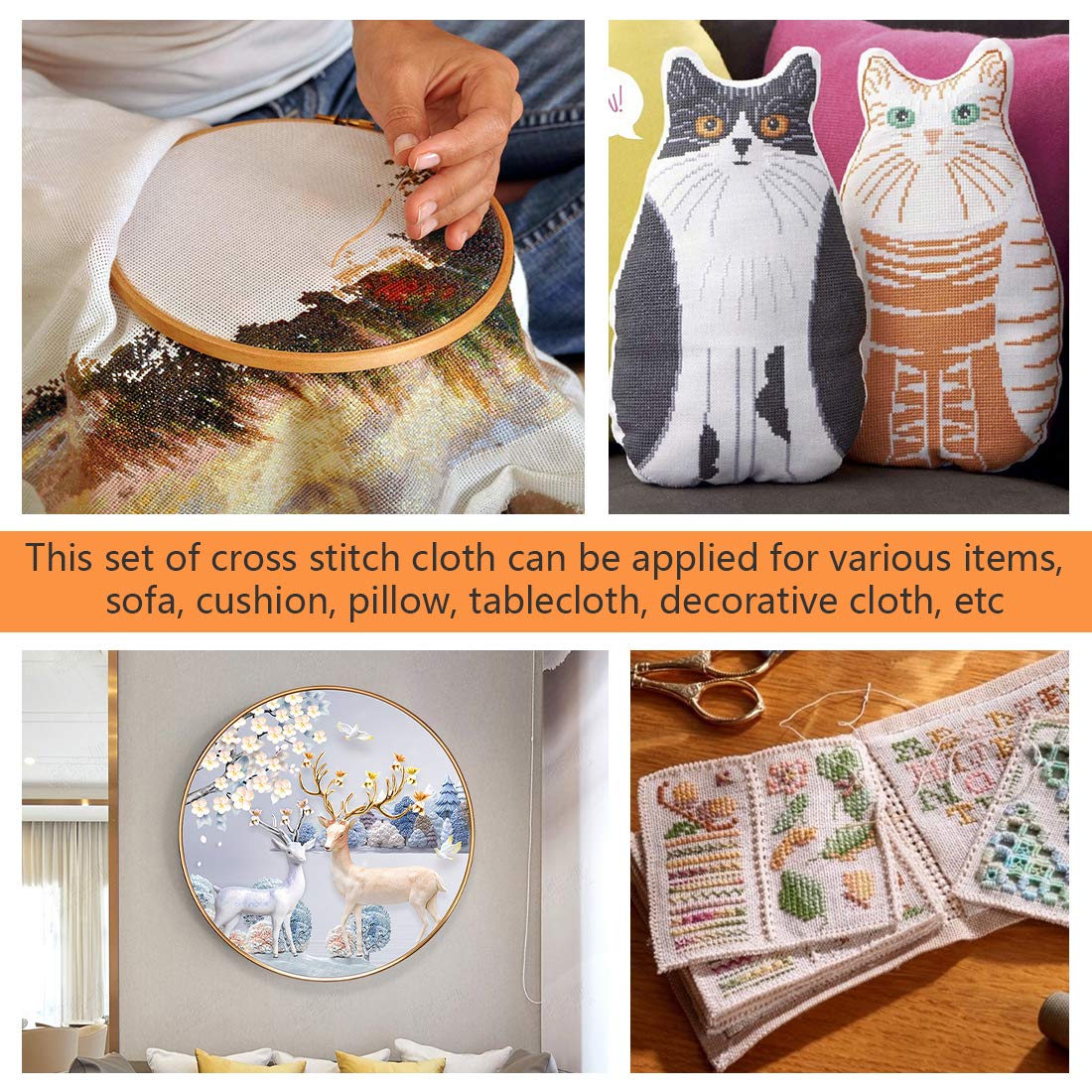 - 【Perfect for DIY】Various embroidery, hanging embroidery, needle embroidery and machine embroidery, perfect for fit your embriodery craft, The Cross stitch embroidery cloth can be applied to various items such as tablecloths, curtains, cushions, pillows, sofas, decorative cloths, etc. It is one of the best choices for various holiday gifts.