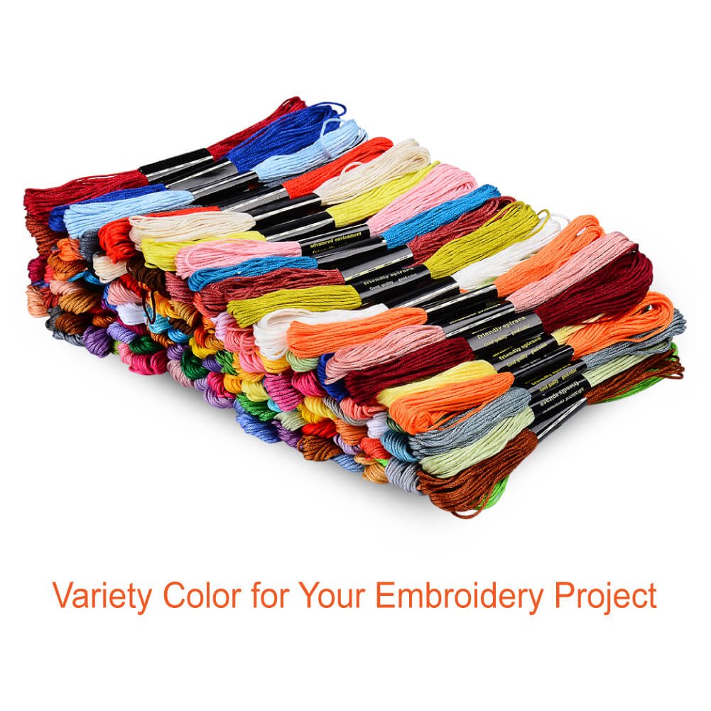 - STRONG EMBROIDERY THREAD – The floss is made of polyester- cotton, glossy and smooth to work with. Each skein is 8 meters long and includes 6 strands