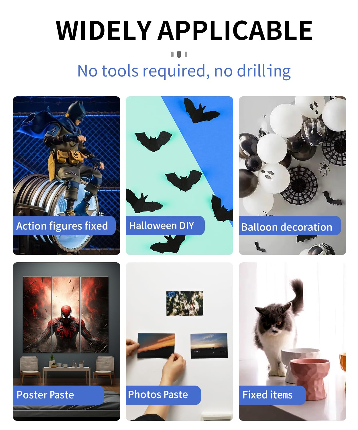 - 【Safe & Non-damaging Items】Our non-toxic sticky tack dots tabs are acid, fume, and lignin free; it can be safe used on photos action figures surfaces, so you don't have to worry about damaging the surface of precious collections and photos. Perfect for protecting antiques and collectibles from falling and breaking.