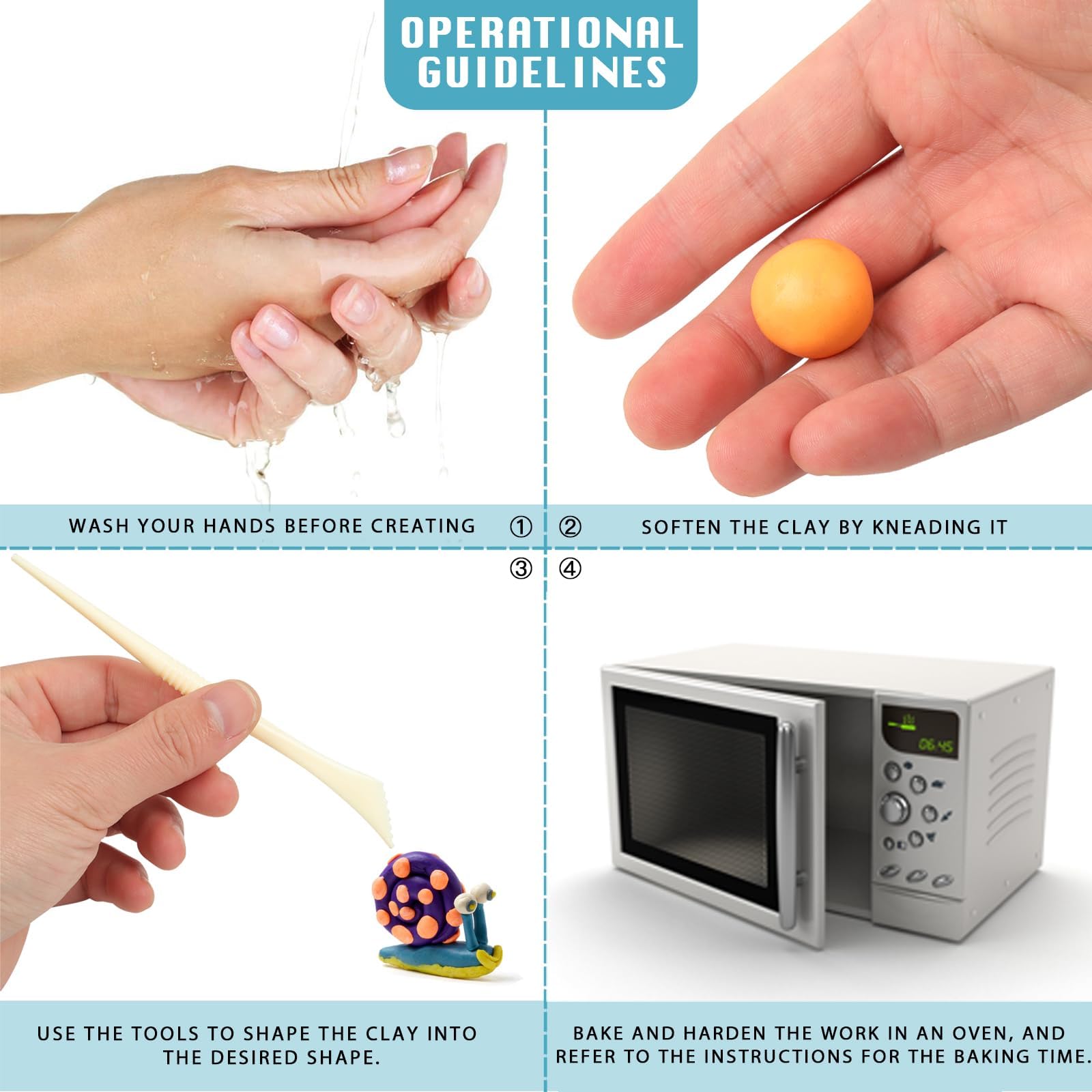 - Molding Method:Polymer clay is suitable for oven baking, polymer clay is baked in the oven at a temperature of less than 140 °C (284 °F) for 10-30 minutes, please refer to the instructions for specific use, if you have any questions, please feel free to contact us, to provide you with 100% satisfaction.