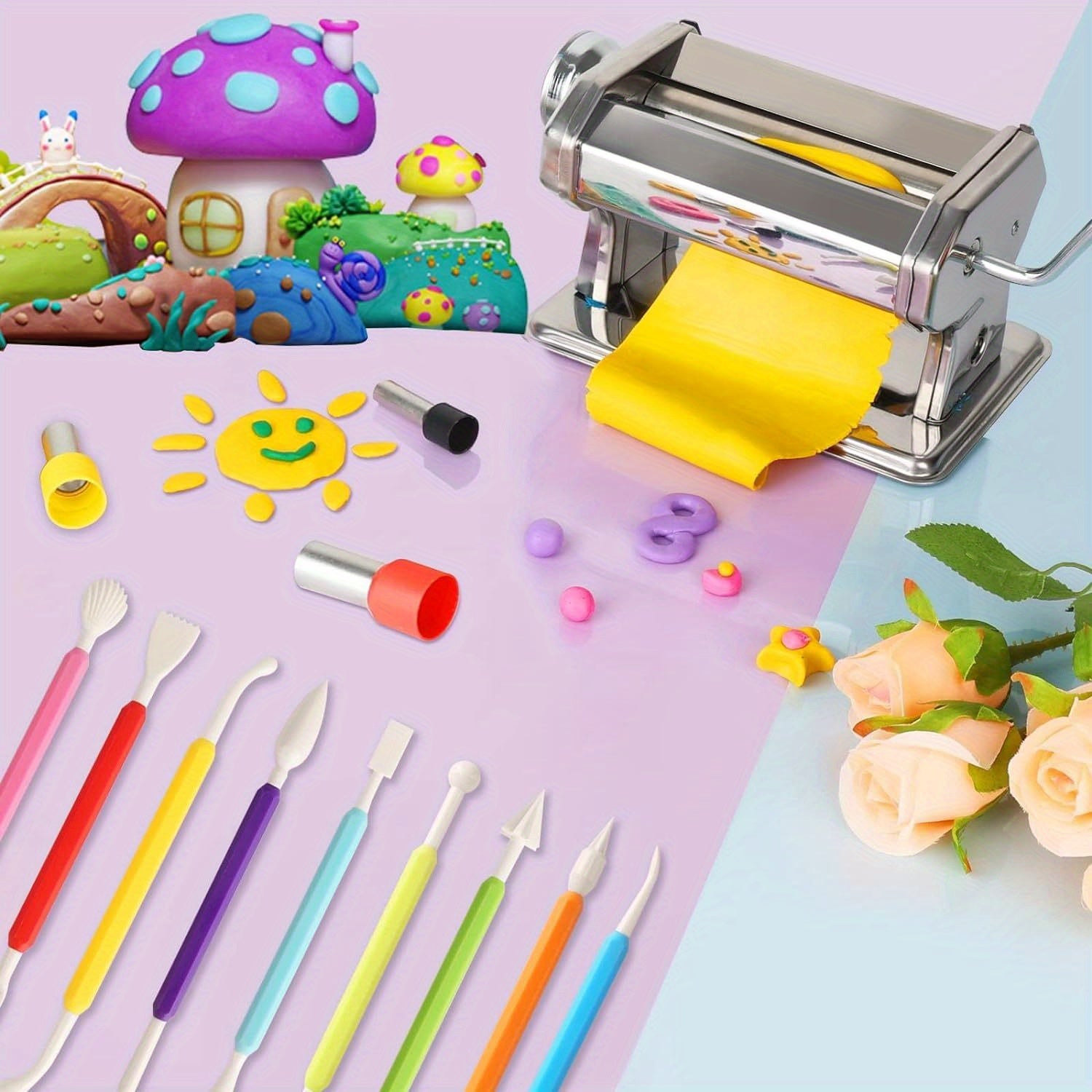 Polymer clay roller machine featuring a 5.91-inch (15cm) working width and 6mm thickness settings for consistent clay preparation. This craft project tool includes polymer clay cutters for creating smooth glaze applications and uniform clay sheets, constructed with durable materials for reliable crafting use.