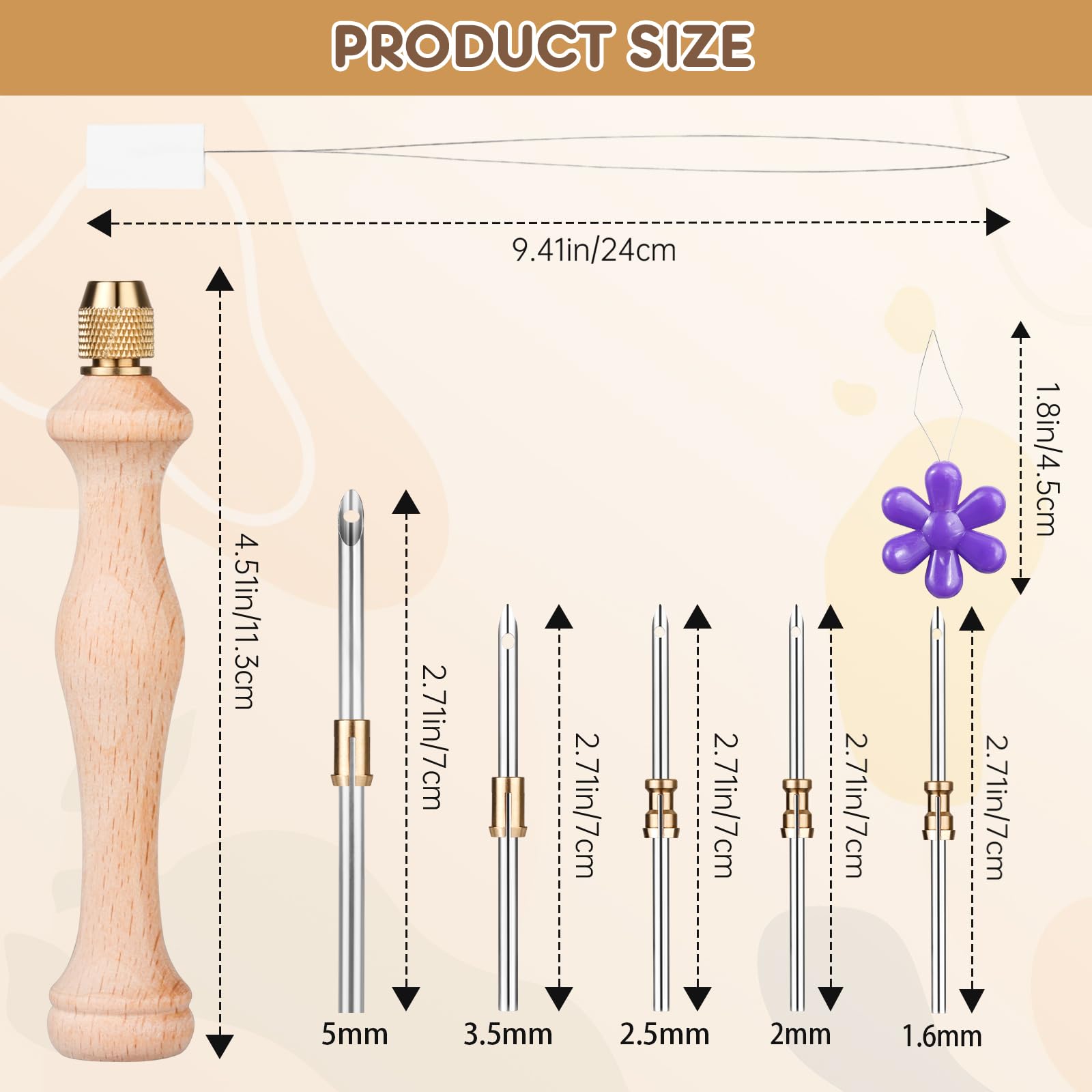 - 【Package Include】 You will receive 1pcs wooden punch needle with 5pcs adjustable needles, 2pcs threaders ,1pcs scissors 1pcs instructions and 1pcs storage box.The diameter of the needle is 5mm, 3.5mm,2.5mm,2mm,1.6mm.Combined with different needle heights, you can experience a variety of creative punch needle.