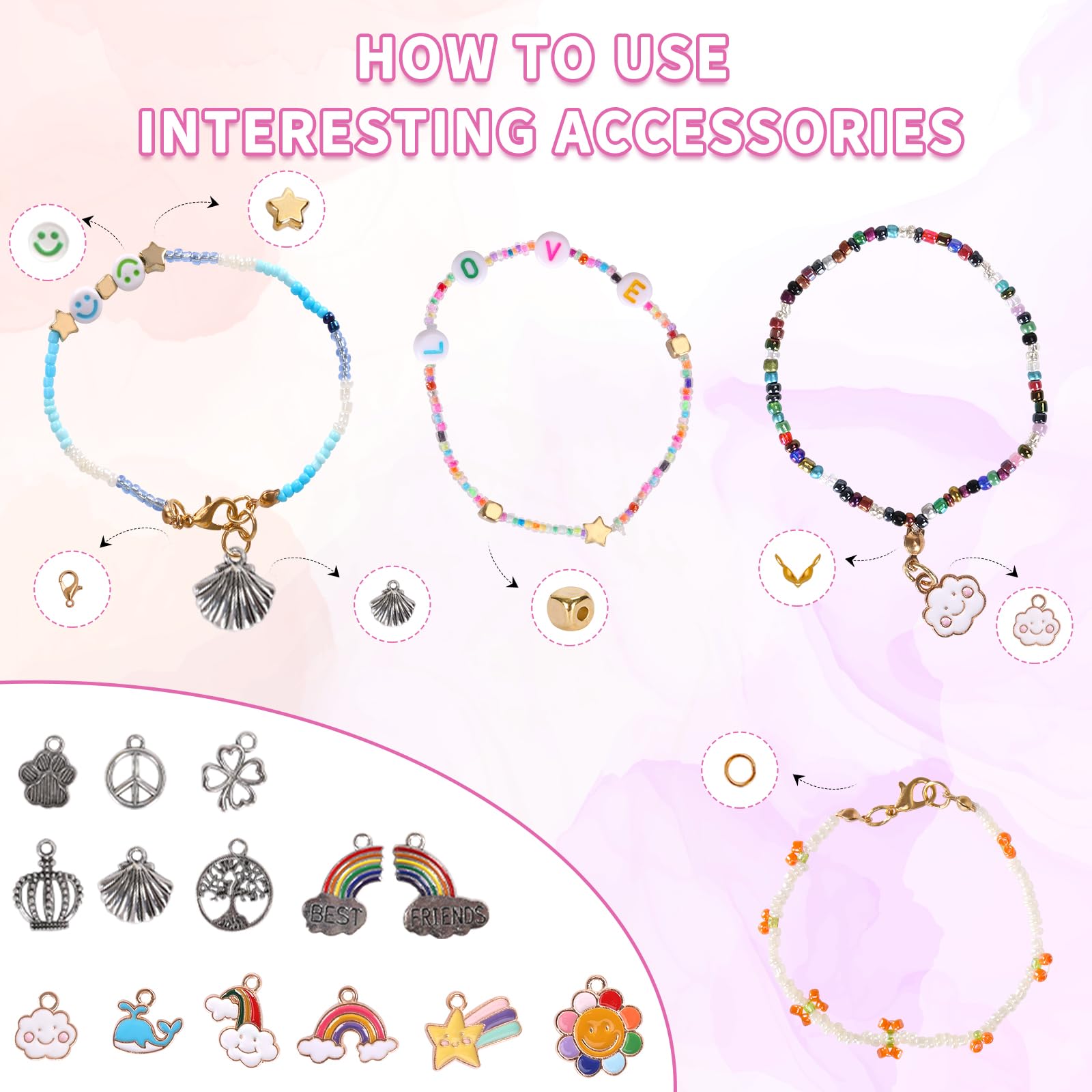 48000pcs Glass Seed Beads Kit for Jewelry Making, 96 Colors 2mm Small Beads with Pendant Charms and Letter Beads for Friendship Bracelet, Necklace Ring Making
