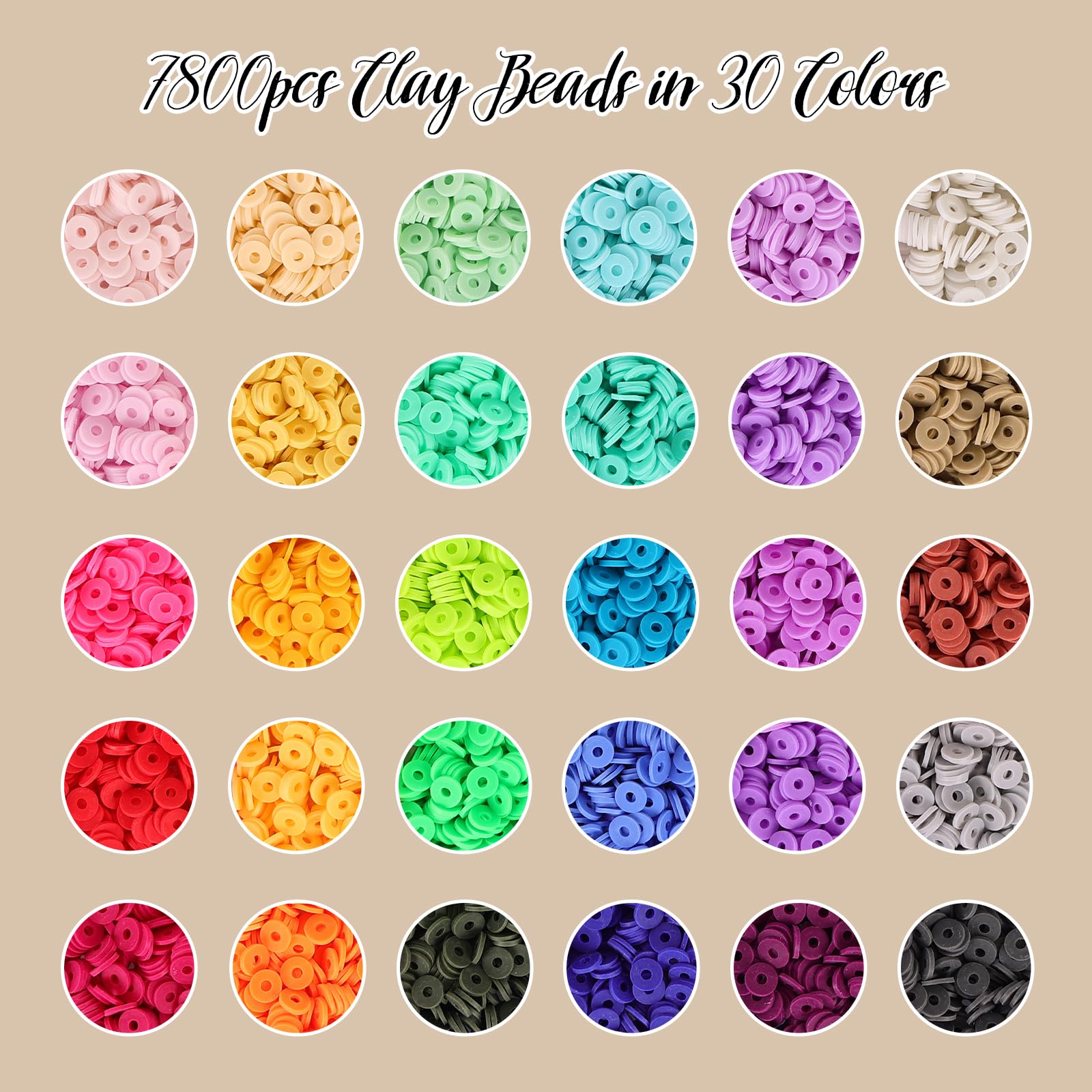 - QUALITY COMBINATION: Clay beads are made of polymer clay. Each bead is unbreakable, with uniform size (6mm diameter, 2mm hole diameter), very easy to pierce. We optimized and upgraded the packaging of the product to provide you with 30 different color choices, including the current popular gradient rainbow colors as well as some dark colors, which can be used to make both beautiful colorful bracelets and elegant light-colored bracelets, match as you like.