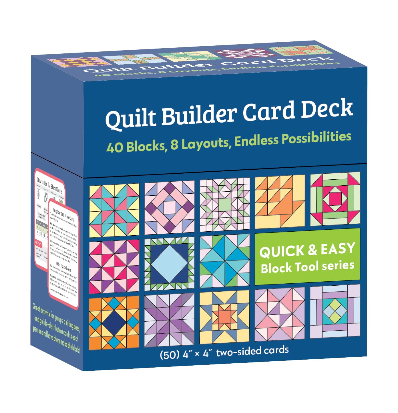 Deal yourself a quilt challenge with these delightful blocks to create dynamic quilts. Featuring 50 4” x 4” cards, the possibilities are endless to create your unique quilt and are great for planning different options and layouts. Based on the best-selling series Quick & Easy Block Tool, this set is perfect to spur your creativity with quilt blocks. The card deck also makes for a thoughtful gift and an ideal project for you and your quilty friends to each work on a block for your next quilting bee. Unplug with these cards and do some hands-on quilt design!