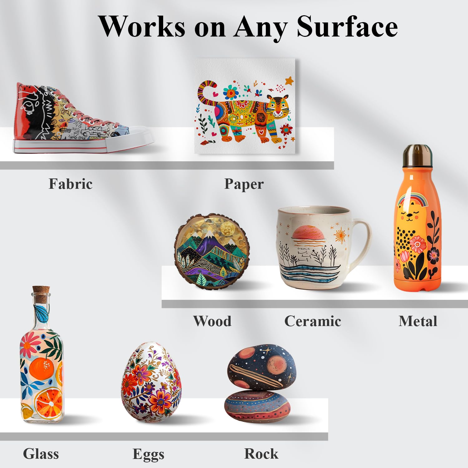 - Smooth Performance on Various Surfaces: Our paint markers for rocks deliver consistent ink flow on multiple surfaces. Whether using paint pens for rocks or acrylic markers paint pens on paper, metal, or wood, these markers provide opaque, odorless, and acid-none ink for lasting results.