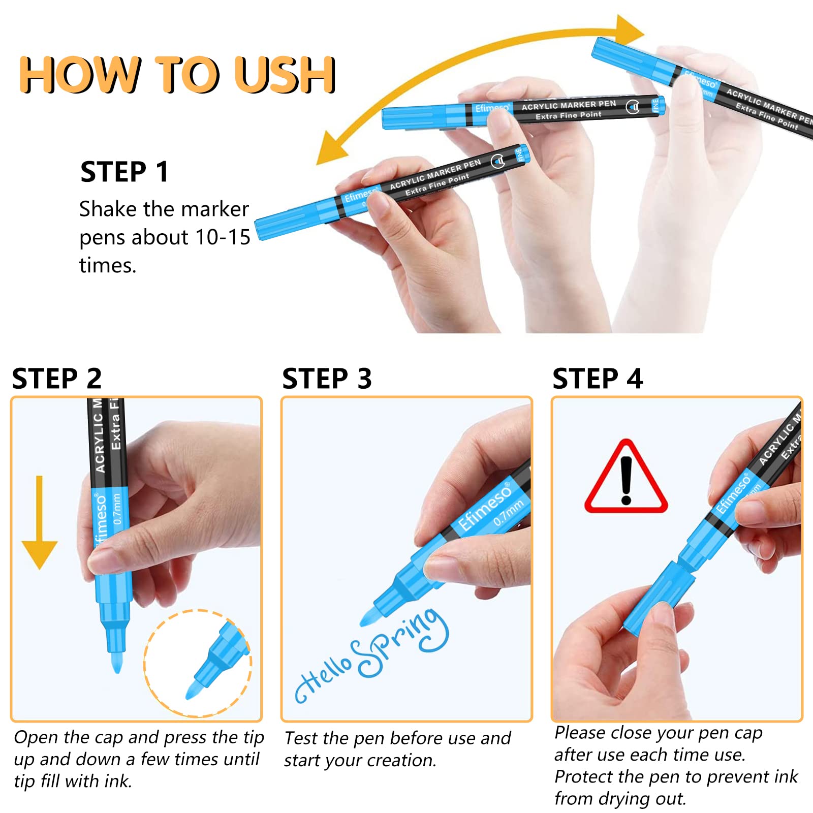 - Safe & Non-Toxic for Kids: Our acrylic paint marker pens is certified safe and non-toxic. Conforms to ASTM D4236 and EN71. Let you use it with peace of mind.Ideal for indoor and outdoor use.