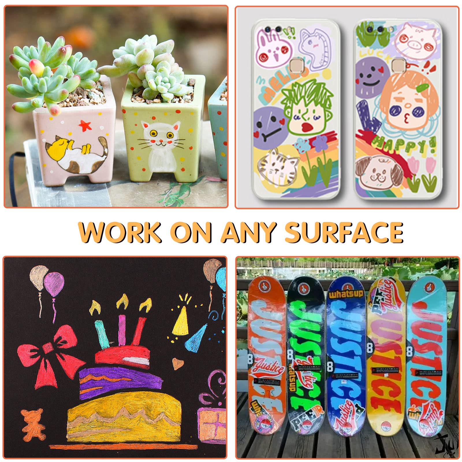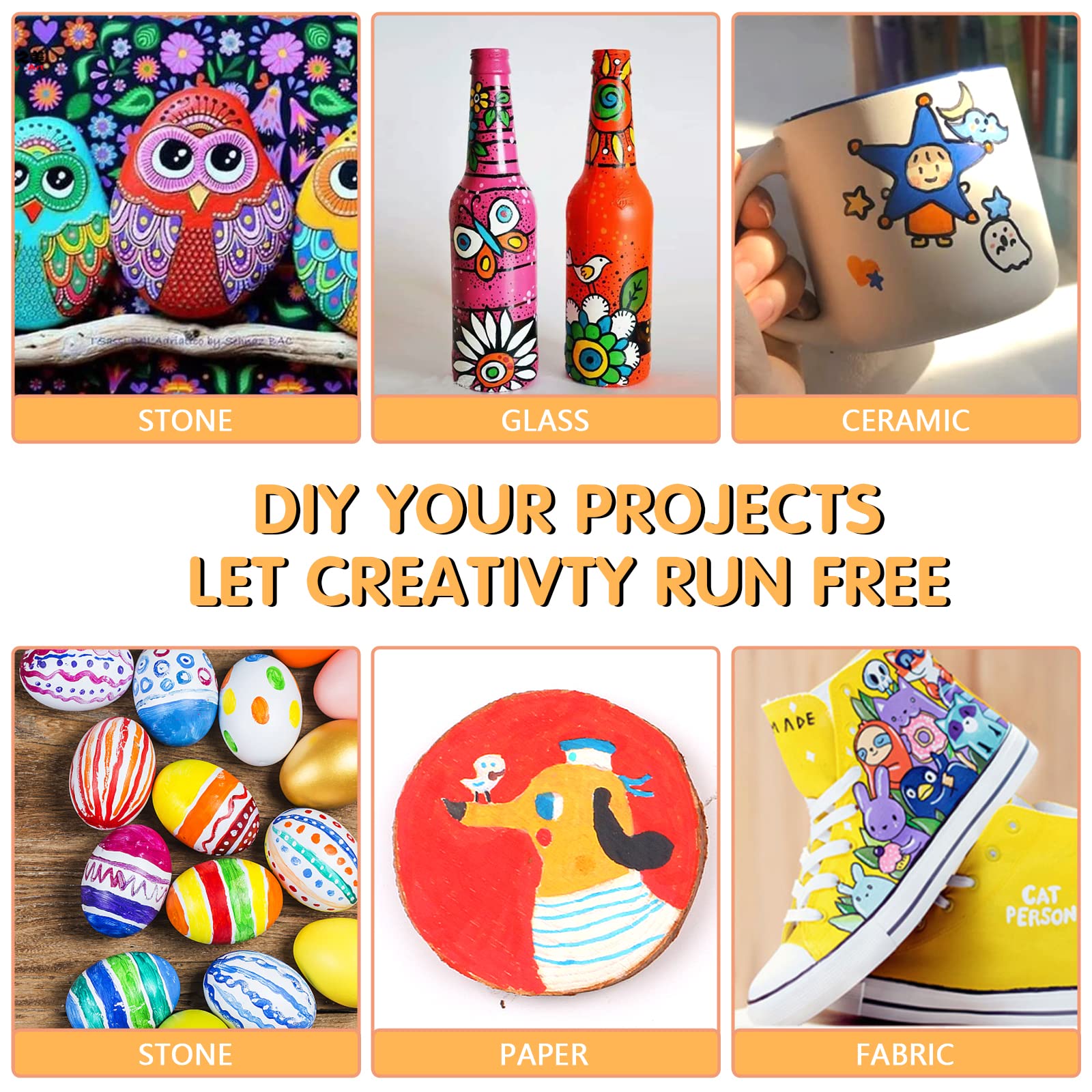 - Work on Multiple Surface: Whether you are beginner or professional can be easily applied to a variety of surfaces. Enjoy creating art projects on a variety of Canvas, Rock painting, ceramic, glass, wood, fabric, stone, metal, plastic, canvas, Easter eggs, Halloween pumpkin, Christmas ornament.