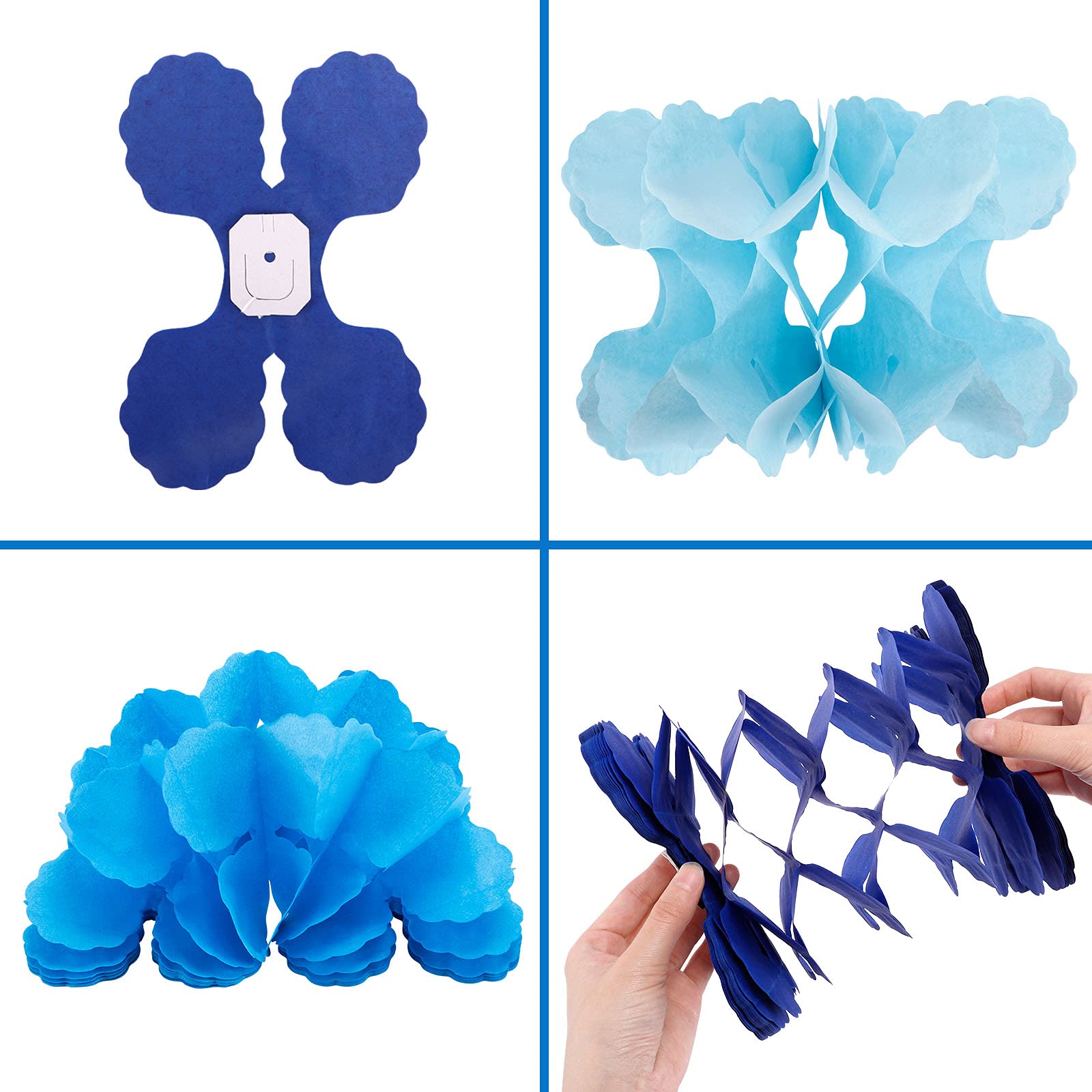 6pcs Four-Leaf Clover Garland Party Blue and White Streamers Tissue Paper Hanging Flower Garland for Frozen Party Baby Shower Decoration