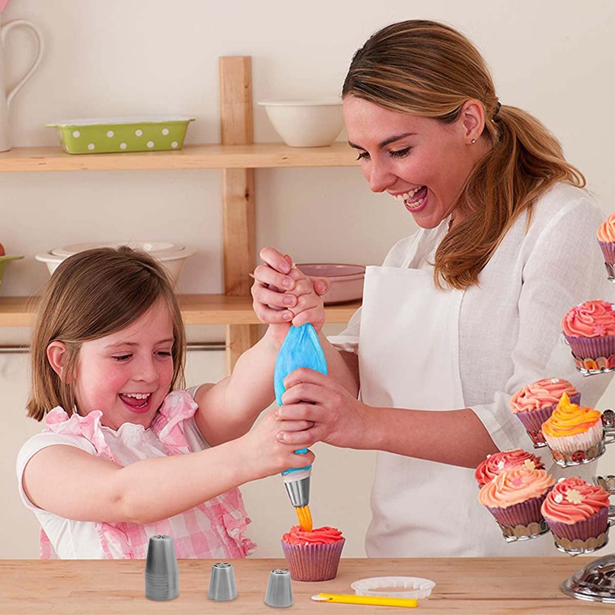- 【Easy to Use】These flower piping tips are very suitable for piping and making cupcakes, pipe cream rolls, large cakes and so on. They are easy to use, just select the desired icing nozzle tip, cut the bag to the appropriate size, put coupler in, and tighten the nozzle tip, add cream and create beautiful flowers for your cake