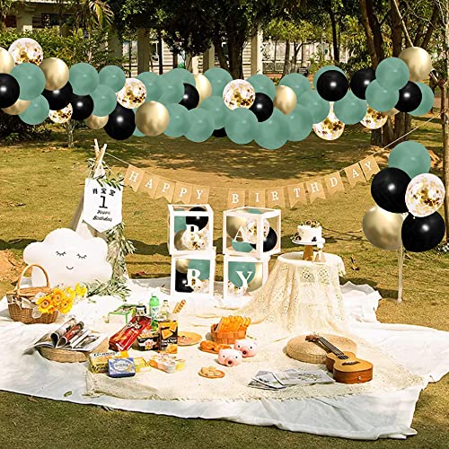 Sage Green Black Gold party Balloons, 50pcs 12 Inch Retro Sage Green Black Metallic Gold Confetti Balloons with Ribbon for Birthday Baby Shower Decorations (GreenBlack50pcs)