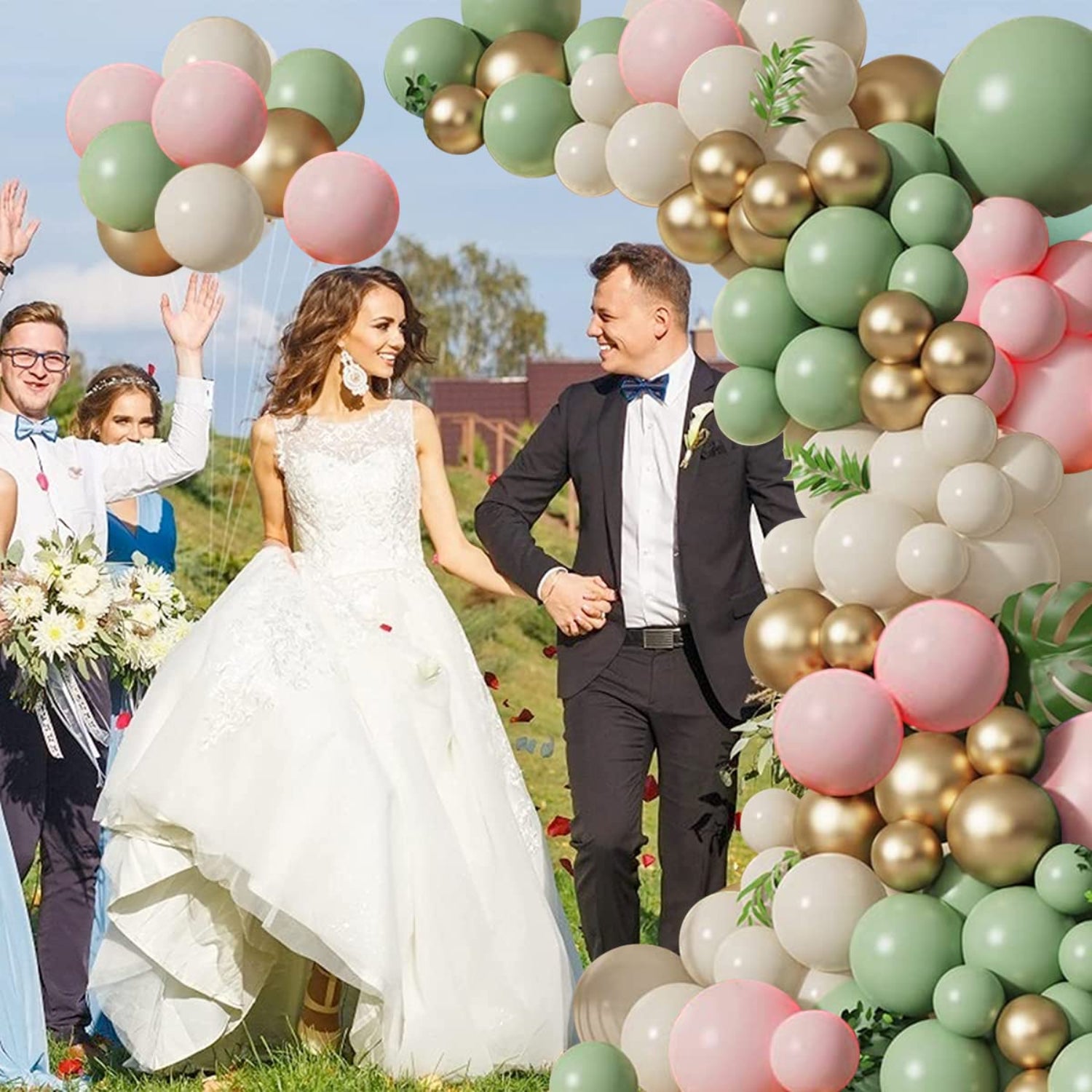 - 【Sage Green Balloon Garland】This sage olive green balloons garland kit including: 133pcs,there has 18inch, 12inch,10inch and 5inch size balloons,there has: 36 pcs sage green balloons,36 pcs macaron pink balloons,36 pcs sand white balloons and 25 pcs metallic gold balloons.The Balloon Garland Accessories Kit including:1 pcs strip tape,5 pcs glue points.