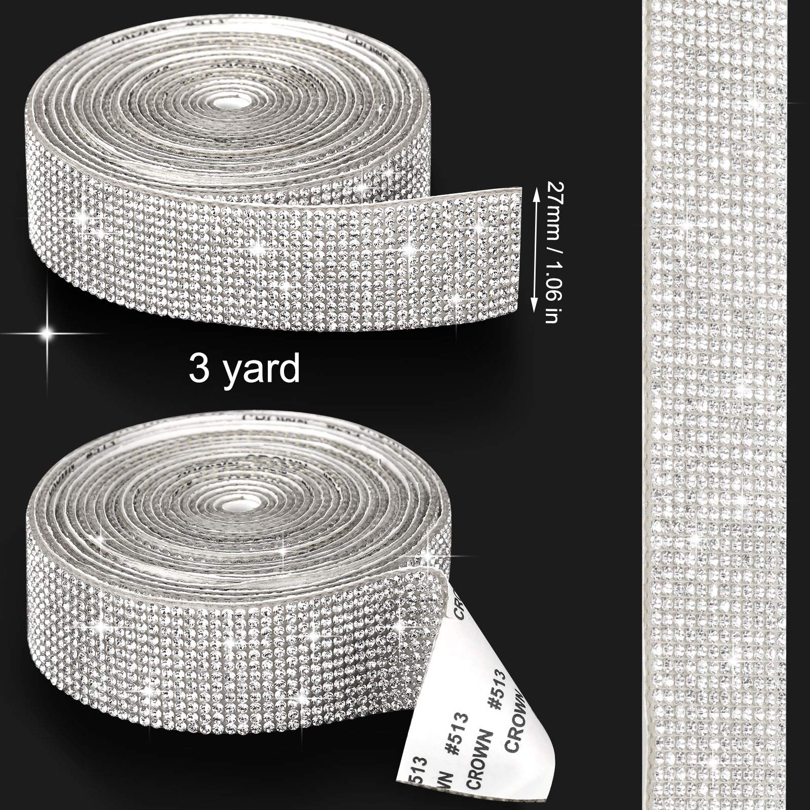 Self Adhesive Rhinestone Strips Diamond Bling Crystal Ribbon Sticker Wrap for Craft Jewel Tape Roll with 2 mm Rhinestones for DIY Car Phone Christmas Decoration (Silver,1.06 Inch x 3 Yards)