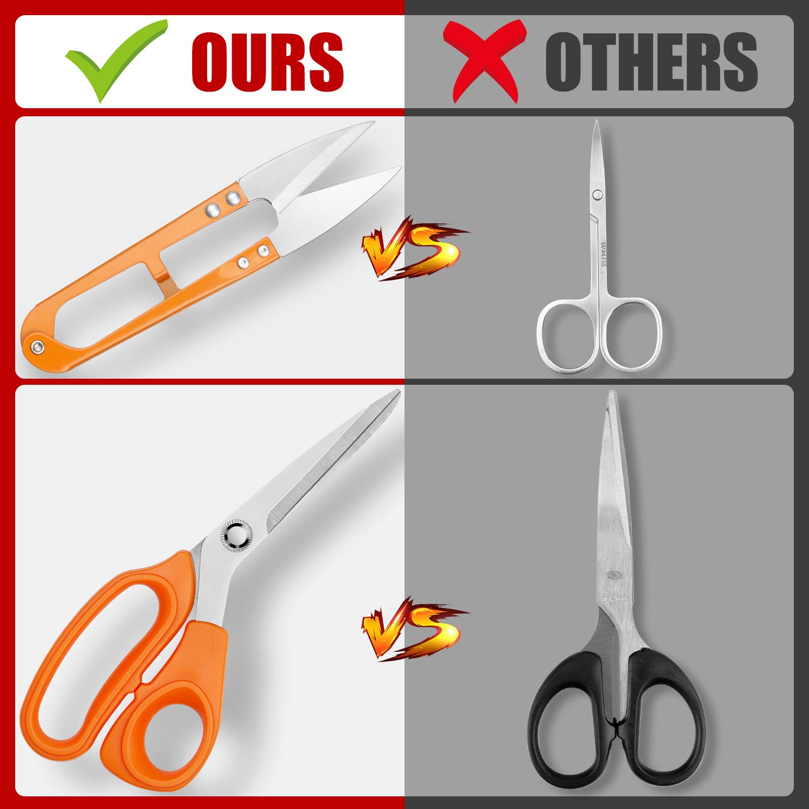 - ✅Ultra Sharp Sewing Scissors - You will get one 8 Inch Professional fabric scissors, one 4 Inch high-quality small scissor for precision work .The heavy duty scissors is easy for cutting more than 8 layers of fabrics. Ideal for sewing, tailoring, quilting, dressmaking, cutting patterns, alterations, hand craft, home and office use etc.great for carpet, burlap, Leather, jeans, canvas, denim, patterns, paper, cardboard and many more