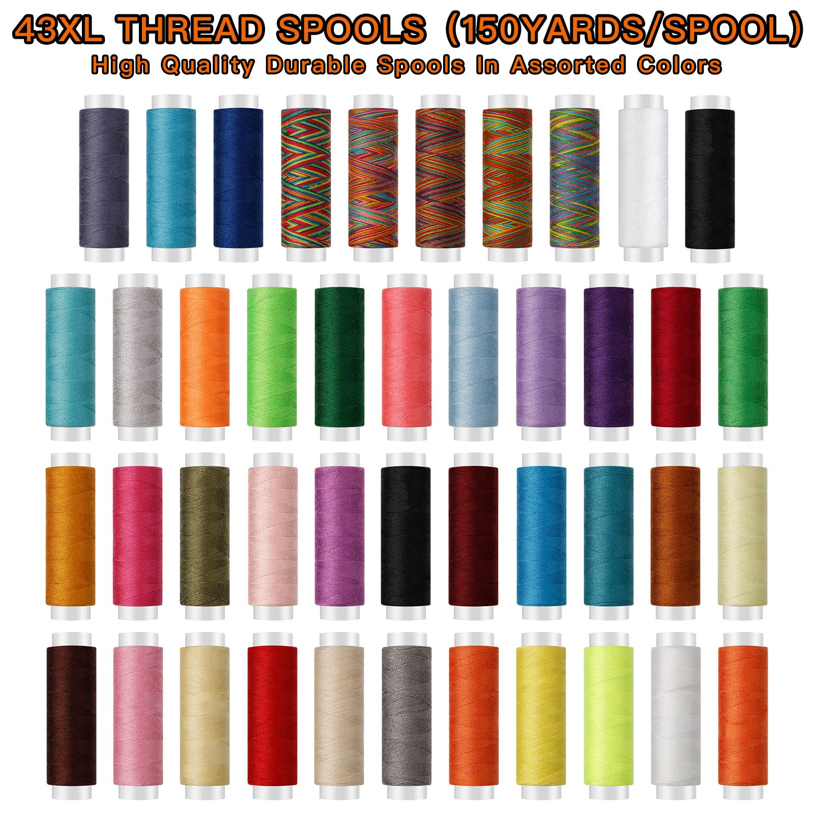 - ✅Newly Upgraded Sewing Kit- Including more than 200pcs sewing accessories in this sewing set -43XL sewing thread ( Extra Black & White threads,5 rainbown threads ,and the length has been upgraded from 120 yards to 150 yards),2 Professional scissors,1 seam ripper ,1 pin cushion,1 tape mesure,30 needles,30 buttons etc.