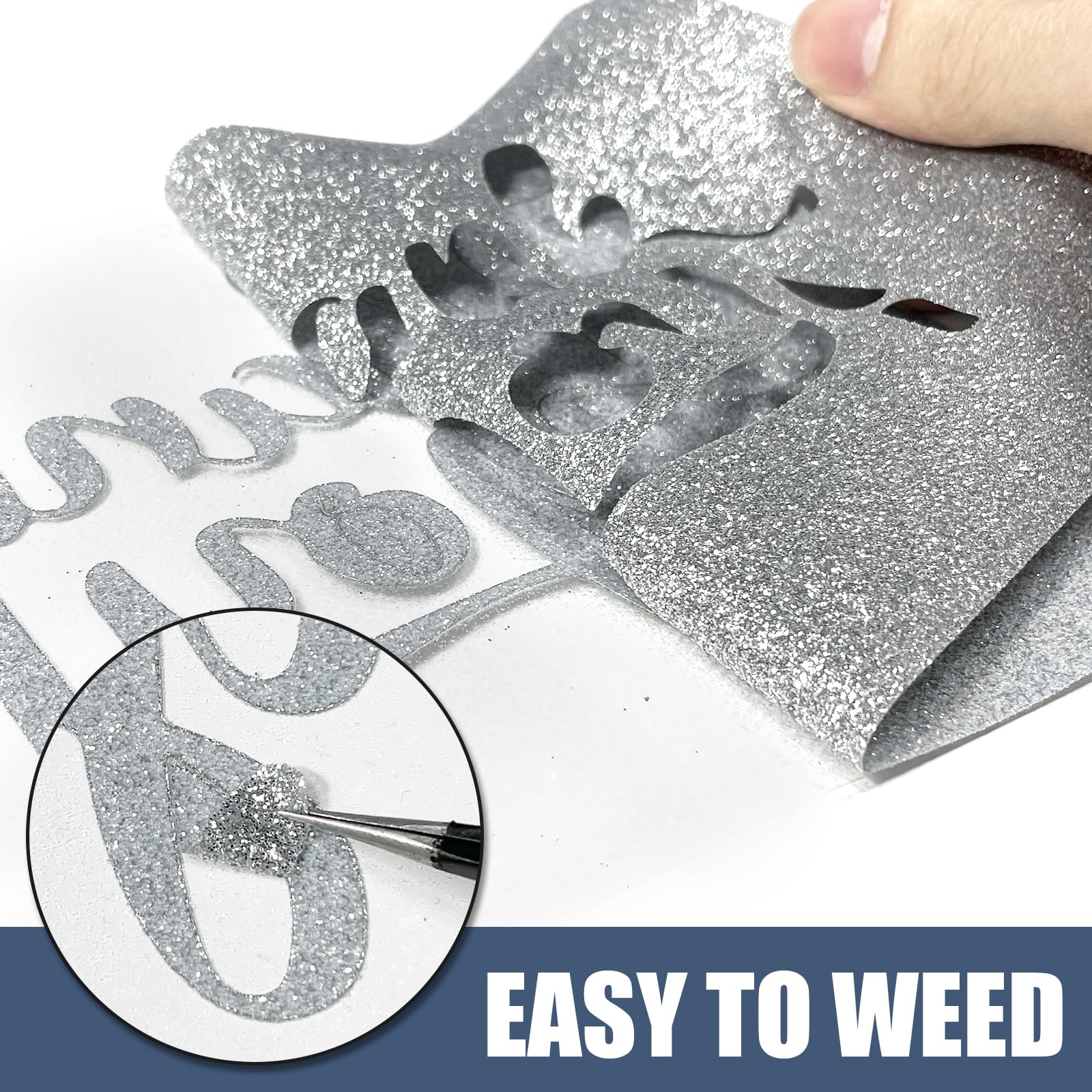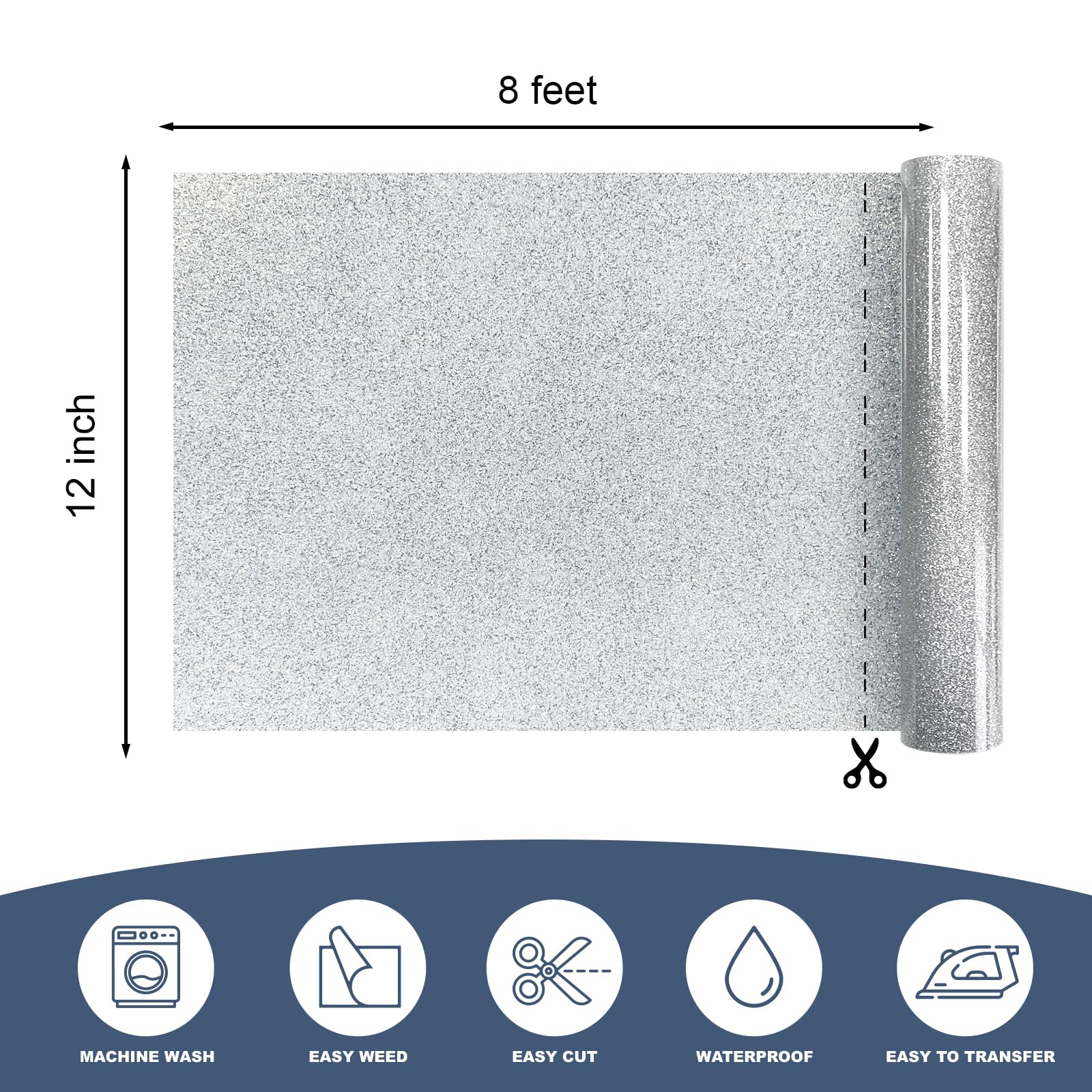 Silver Glitter Heat Transfer Vinyl 12" x 8 ft HTV for Shirts, Glitter HTV for All Cutter Machine - Easy to Cut & Weed for Heat Vinyl Design (Silver)
