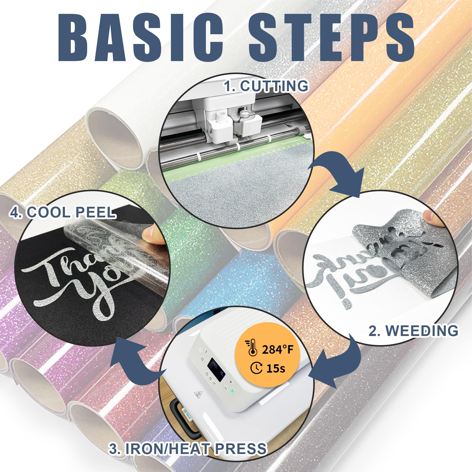 - Eco-Friendly & Versatile: Made from 100% eco-friendly PU material, MerryMade Gillter Vinyl is safe for decorating clothing and accessories.Use our Gillter Heat Transfer Vinyl to customize T-shirts, dresses, sweatshirts, jackets, pillows, backpacks, and more.It's the perfect gift for birthdays, Christmas, anniversaries, and other special occasions.The possibilities are endless!