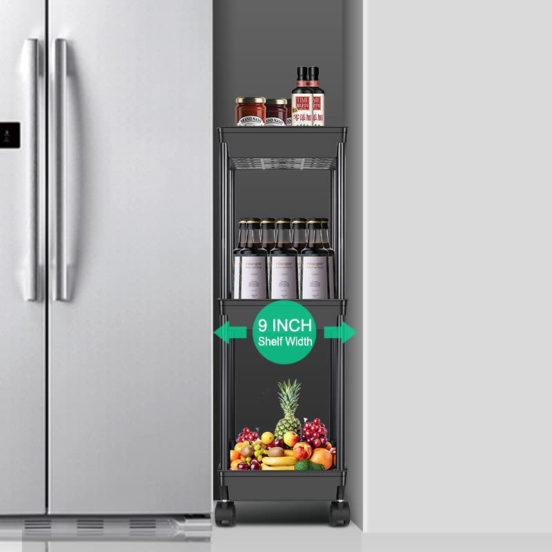 - Flexible 4 Tier Wide Storage Cart:The rolling cart with wheels(360°rotating ) The storage cart can be moved to any corner of the house to store items,can be used in tight spaces in your home for storage.