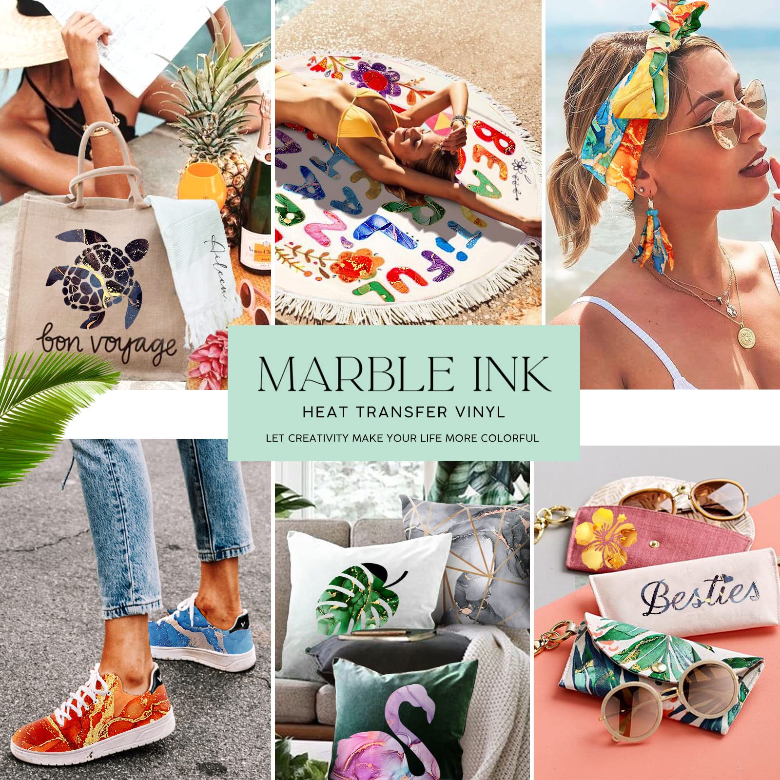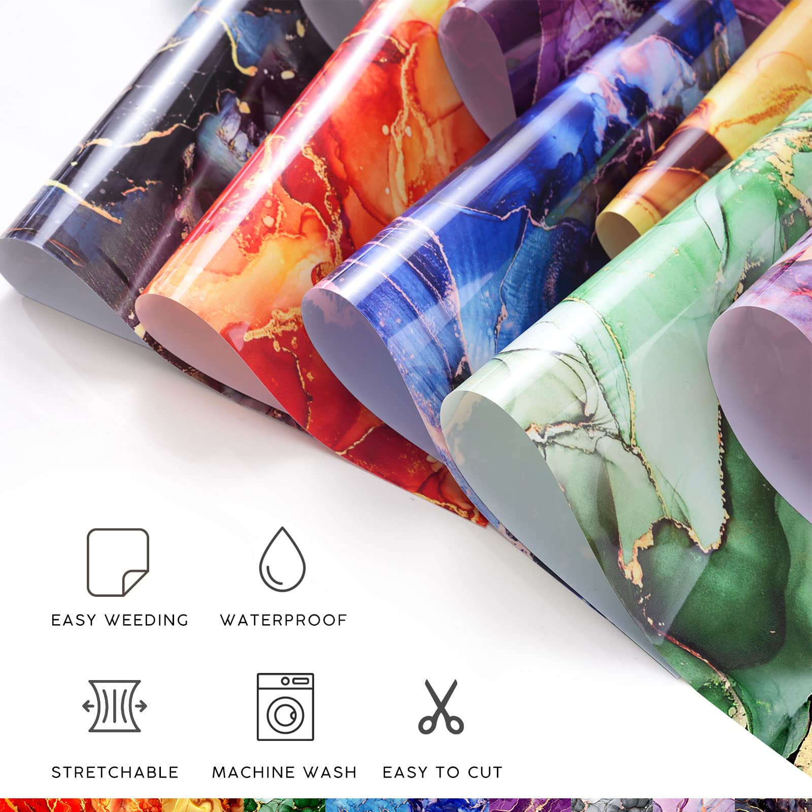 - Marble Heat Transfer Vinyl: The marble heat transfer vinyl set includes 10 HTV vinyl bundles with different patterns. Marble textured vinyl has a variety of patterns and colors to meet your different creative needs, which is simply the gospel of craftsmen!New designs heat transfer vinyl rolls, each sheet measures 11.81" x 9.84"(30x 25 cm)