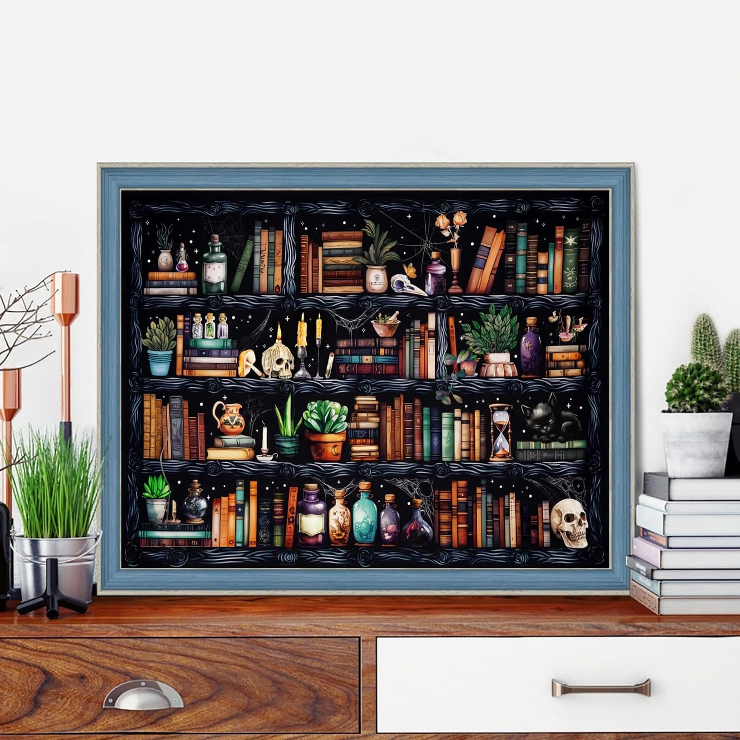 Stamped Cross Stitch Kits for Adults - Bookshelf Embroidery Kits for Beginners Adults,11 CT Patterns Dimensions Counted Cross Stitch Kits for Adults Arts Craft 12x16 inch