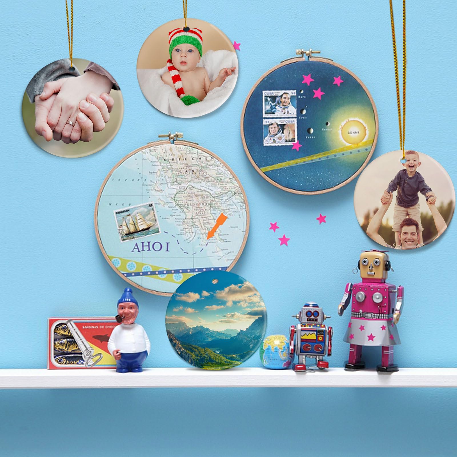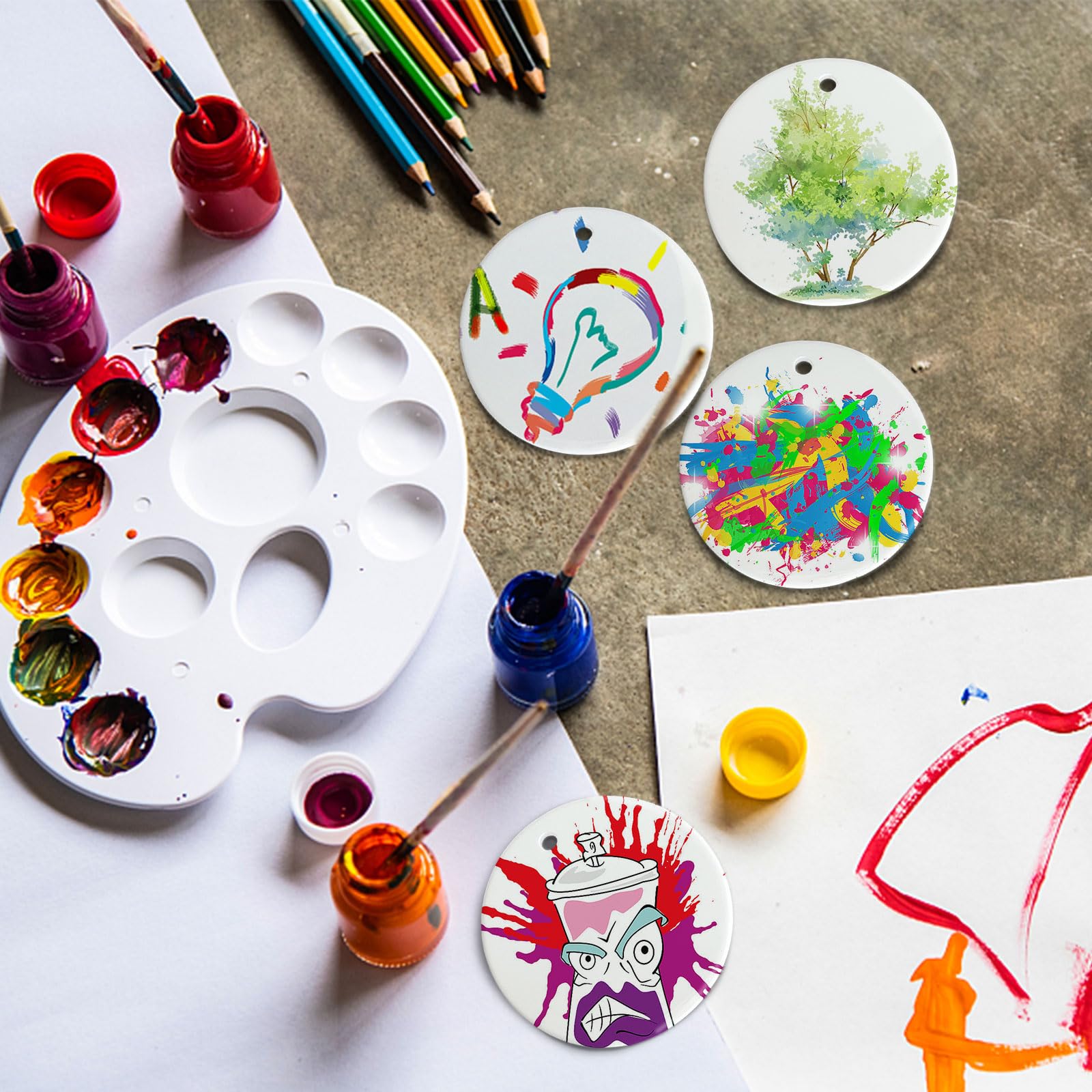 Sublimation Ceramic Ornaments - Bulk White Round Porcelain Ornament Blanks for Heat Press Printing - Personalized Xmas Tree Keepsake Crafts Gift