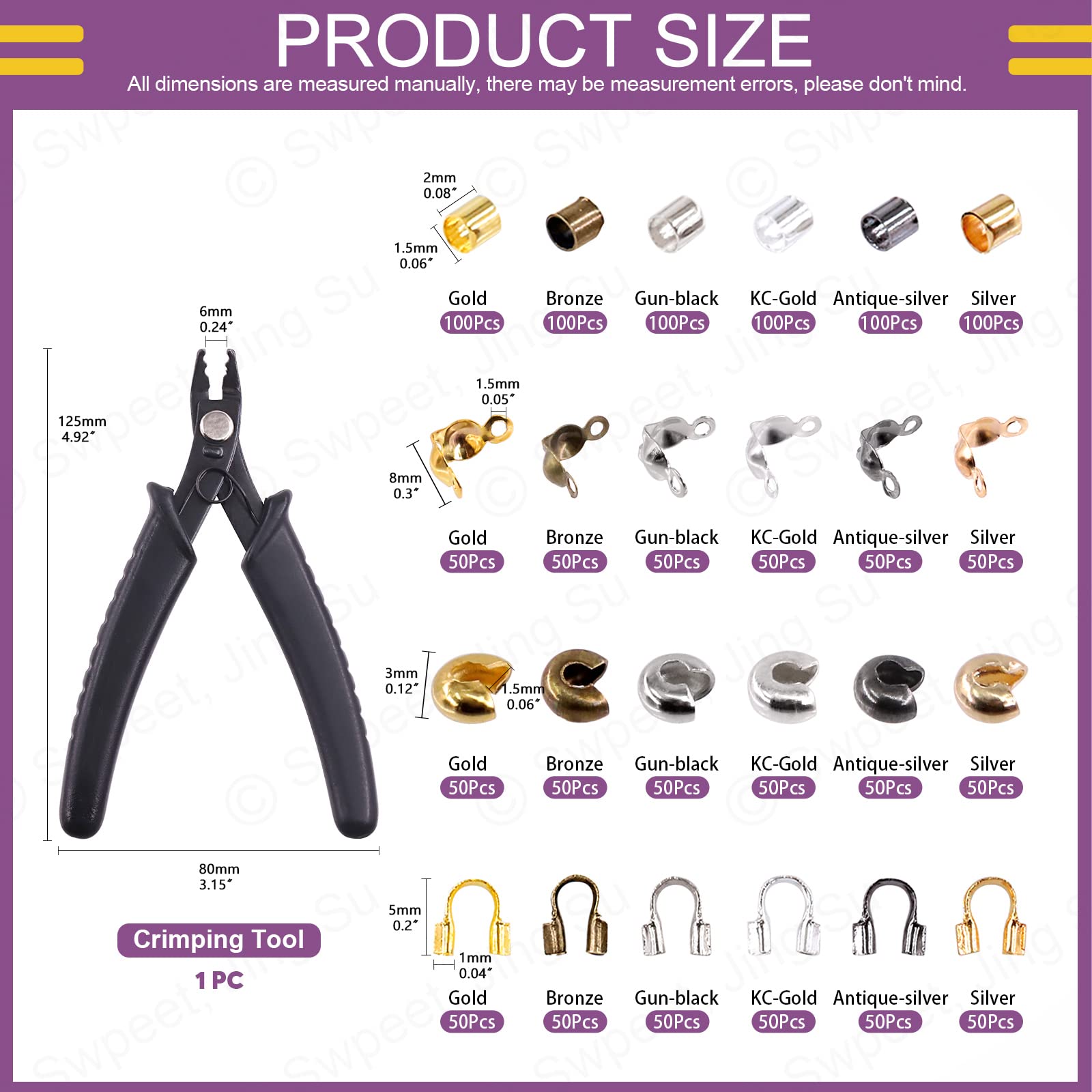 - 💯 What You Get ------------ You will get 1501Pcs 6 Colors 4 Styles Brass Tube Crimp Beads with Bead Crimping Pliers Kit. Including 600Pcs Brass Tube Crimp Beads; 300Pcs Bead Tips Knot Covers; 300Pcs Crimp Bead Knot Covers; 300Pcs Wire Guardians. With so many quantities to meet all your DIY daily needs, you only need one purchase to have this great value set of 1501Pcs. Do not hesitate! order now.