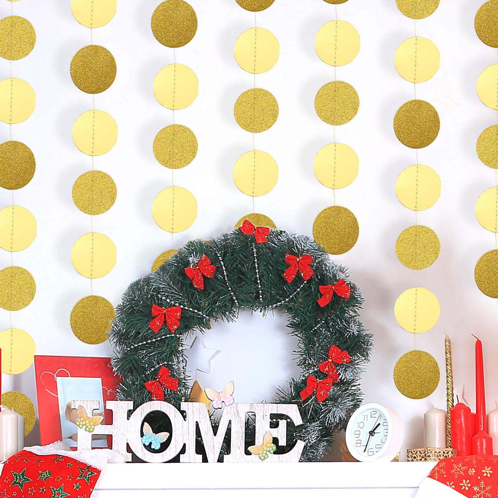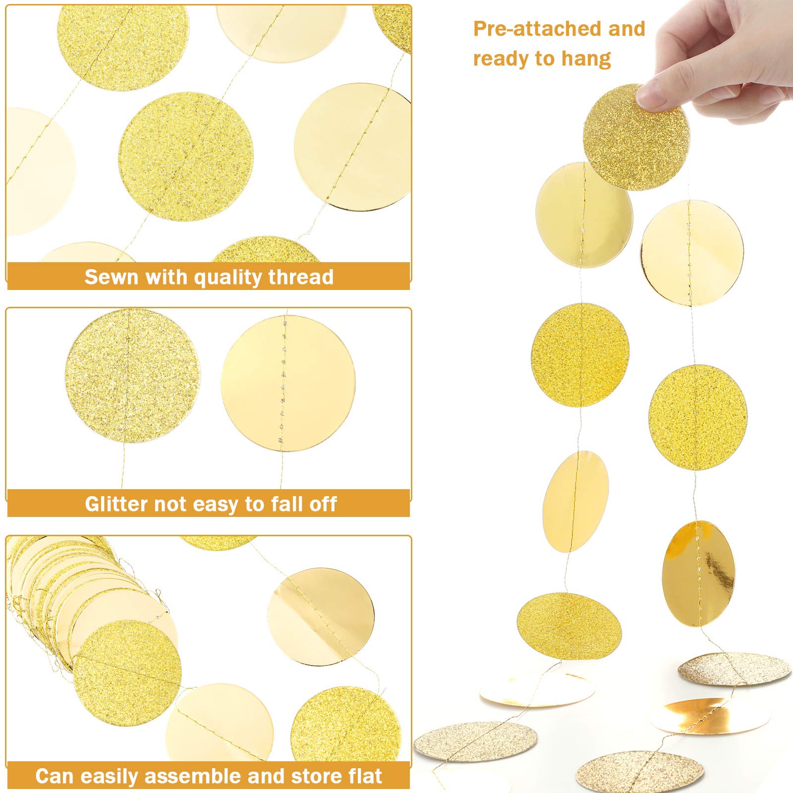 10 Pcs 131 ft Circle Dot Garlands Party Decorations Glitter Hanging Streamers Decor Banner Backdrop for Birthday Wedding Graduation Baby Shower Engagement Party(Gold)
