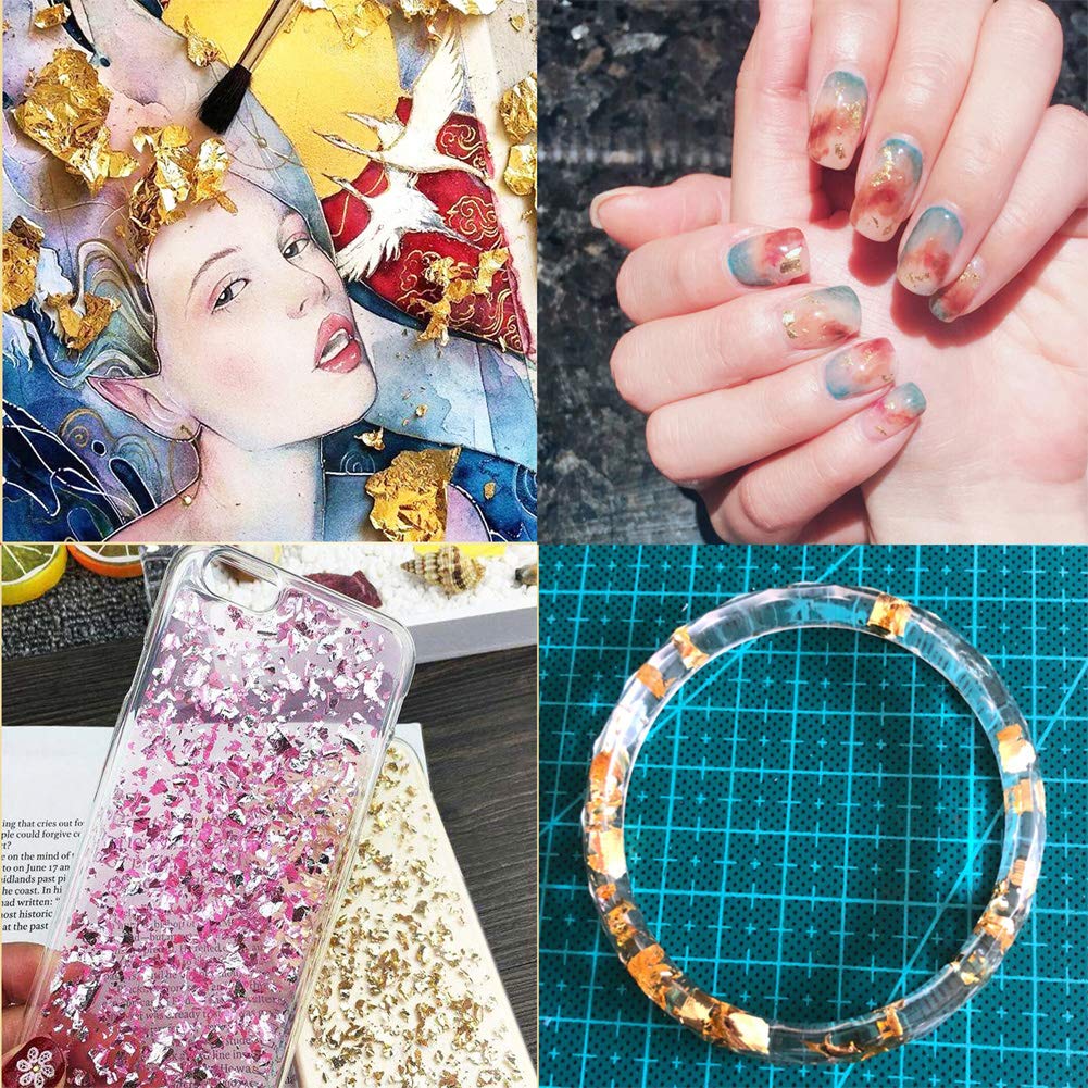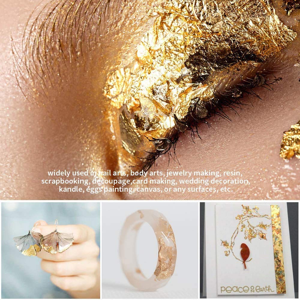 Details: Tamicy 500 Sheets 10 Colors Metallic Gold Foil Leaf Paper - Foil Paper Slime Decorating Gilding Furniture, DIY Nails, Arts, Crafts, Paintings