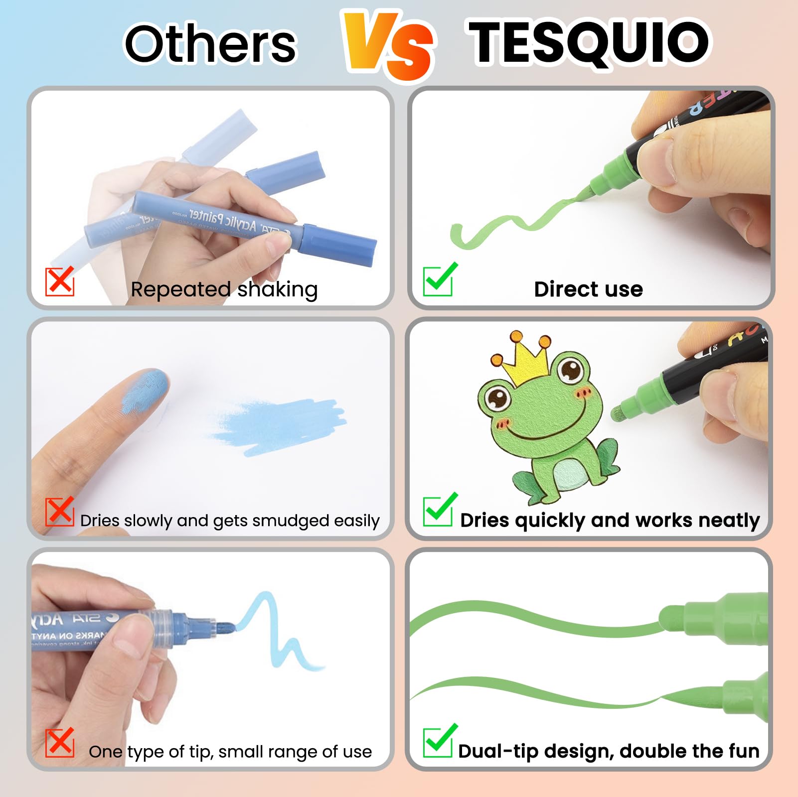 - Unleash Your Creativity: Tesquio acrylic paint sets are ideal for a variety of surfaces, including rock, ceramic, glass, wood, fabric, stone, metal, plastic, and canvas