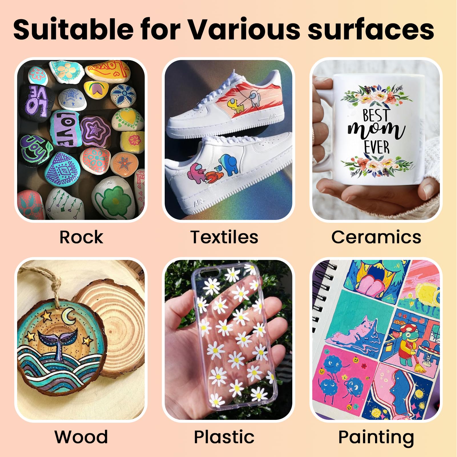 - Quick-Drying and Sun-Proof: Our acrylic pens are designed with a quick-drying formula, allowing you to layer colors without waiting for a long time. Plus, they offer sun protection, ensuring your artwork remains vibrant even when exposed to sunlight