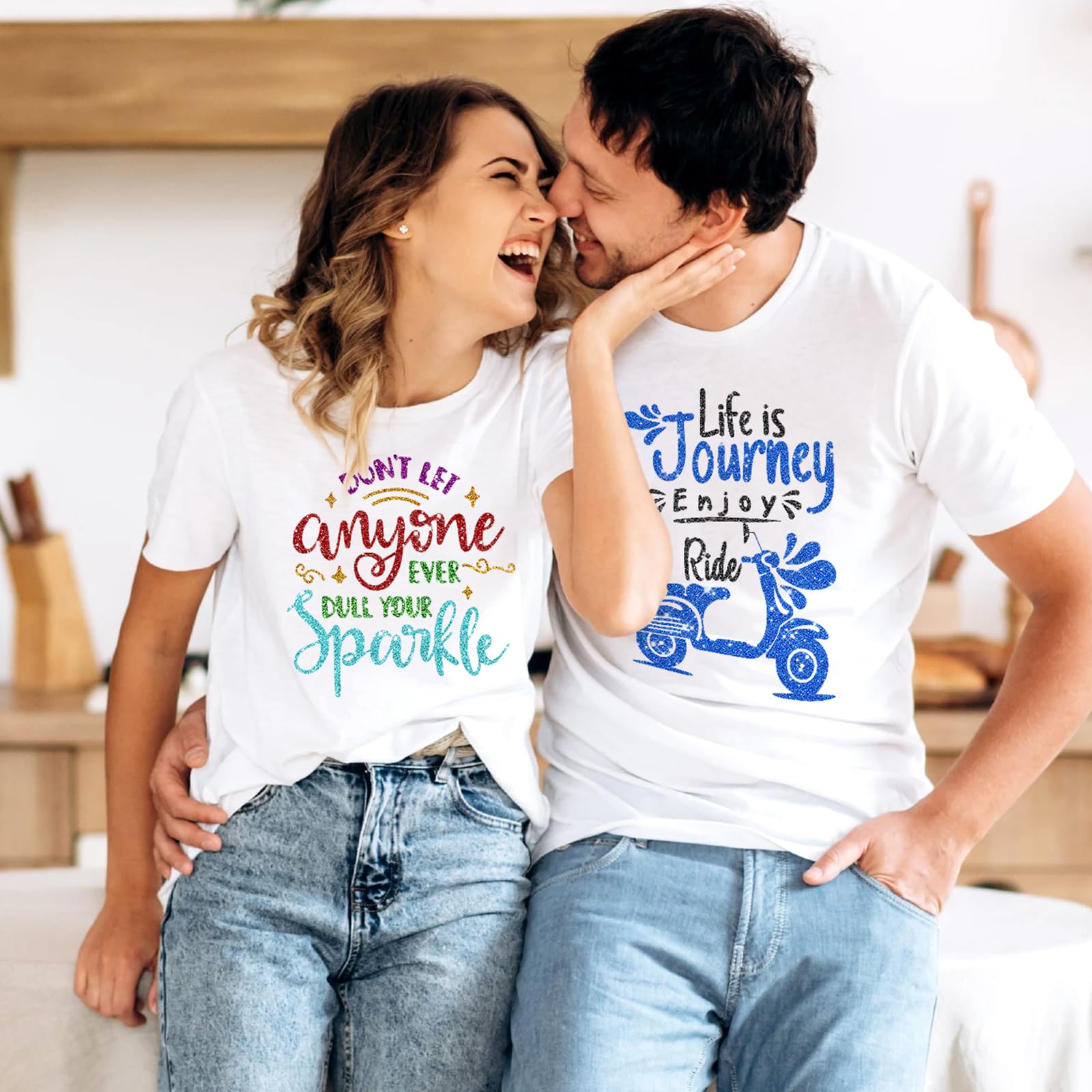 - 【Easy to Apply】 Use a heat press or home iron to decorate your fabrics with ease. Our glitter HTV can be used on a wide variety of fabrics such as Cotton, Polyester, Poly/cotton blends, and Acrylics.