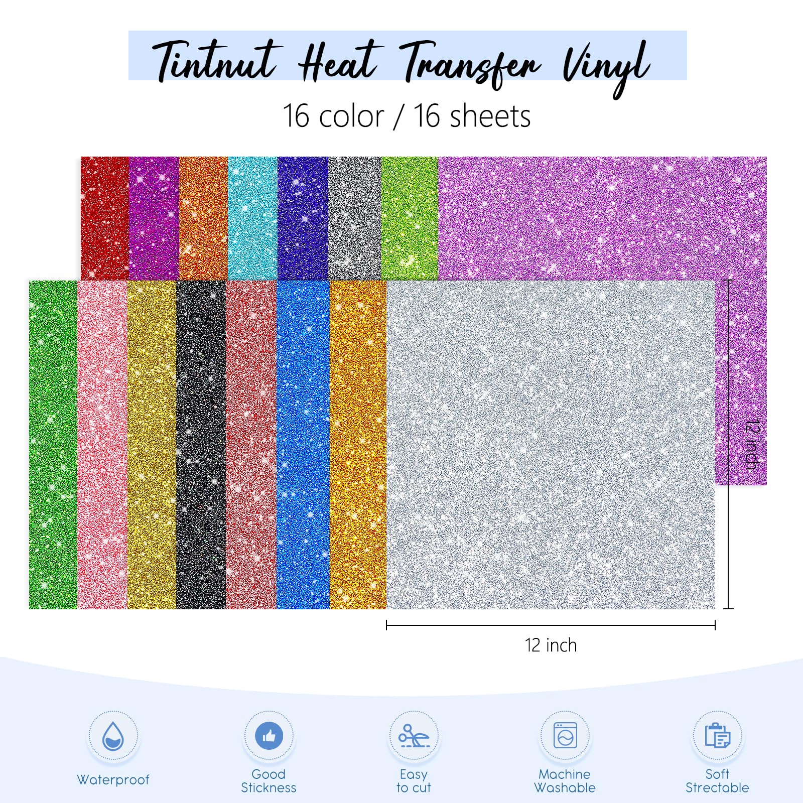- 【Sparkling Glitter Effect】Get ready to add glitter to your designs with Tintnut colorful glitter HTV! The shiny glitter effect and 16 different glitter colors make your project stand out. Use it to create unique and chic gifts for your loved ones.