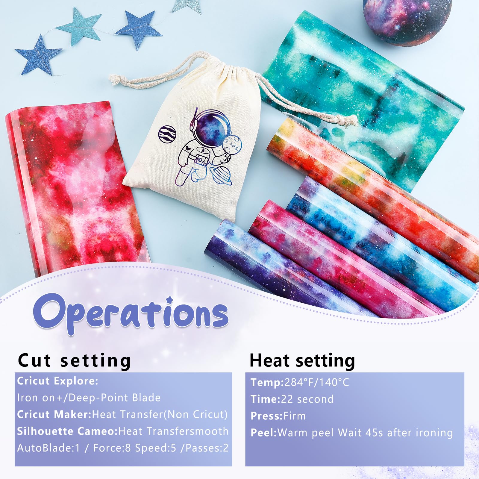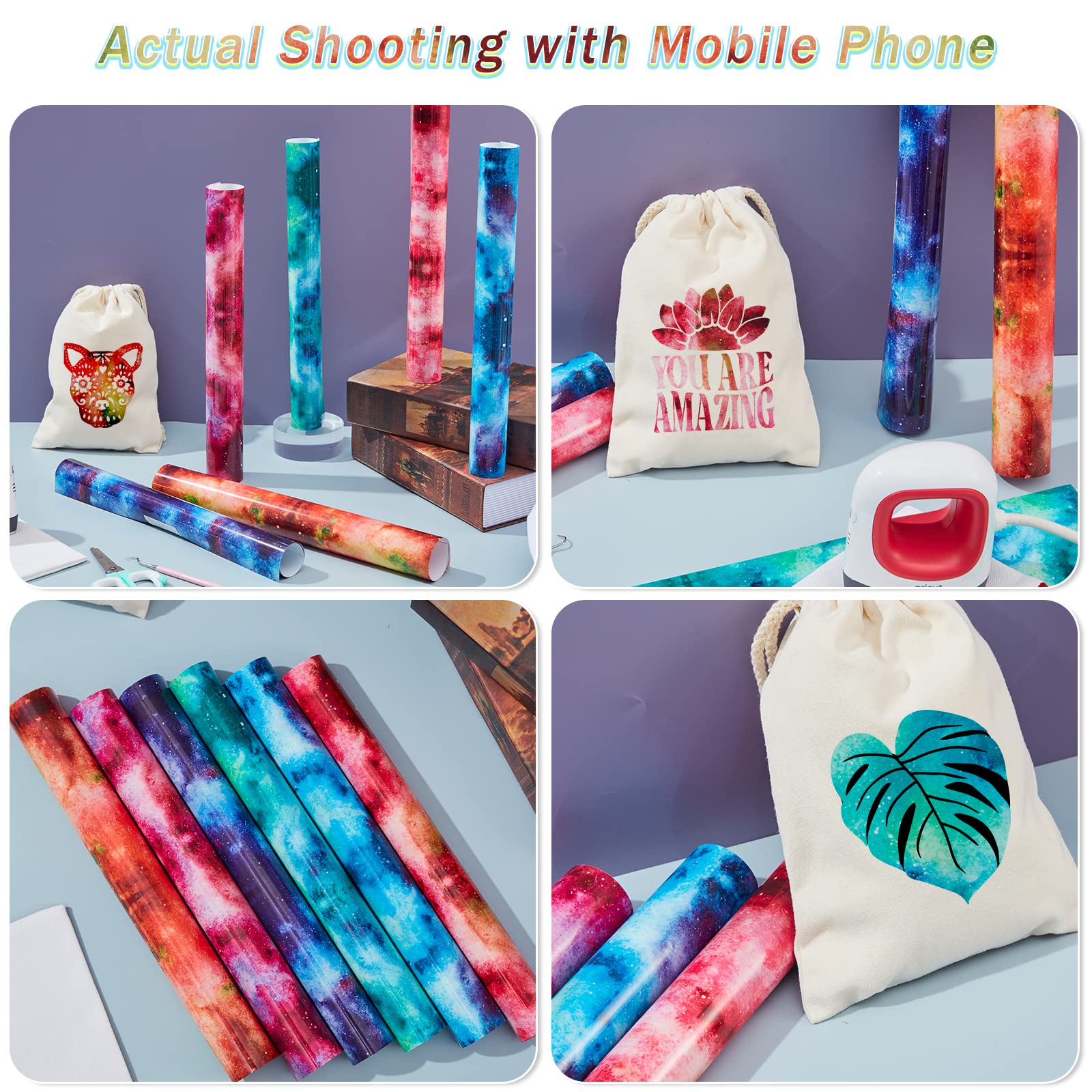 Glow in Dark HTV Heat Transfer Vinyl - 12x10 inch 6 Sheets Luminous Galaxy Iron on Vinyl Galaxy HTV Vinyl for T-Shirts DIY Compatible with Cricut or Silhouette Cameo