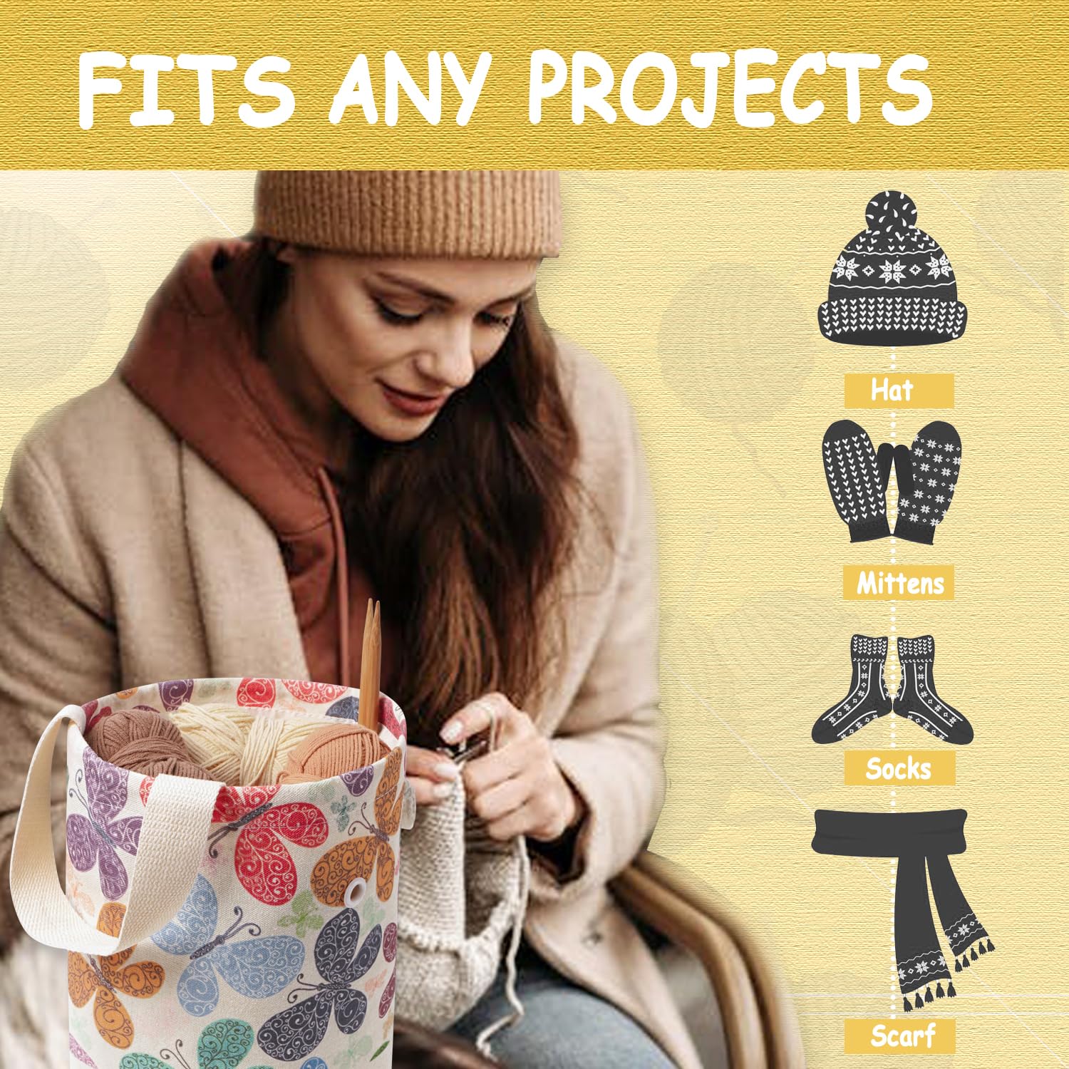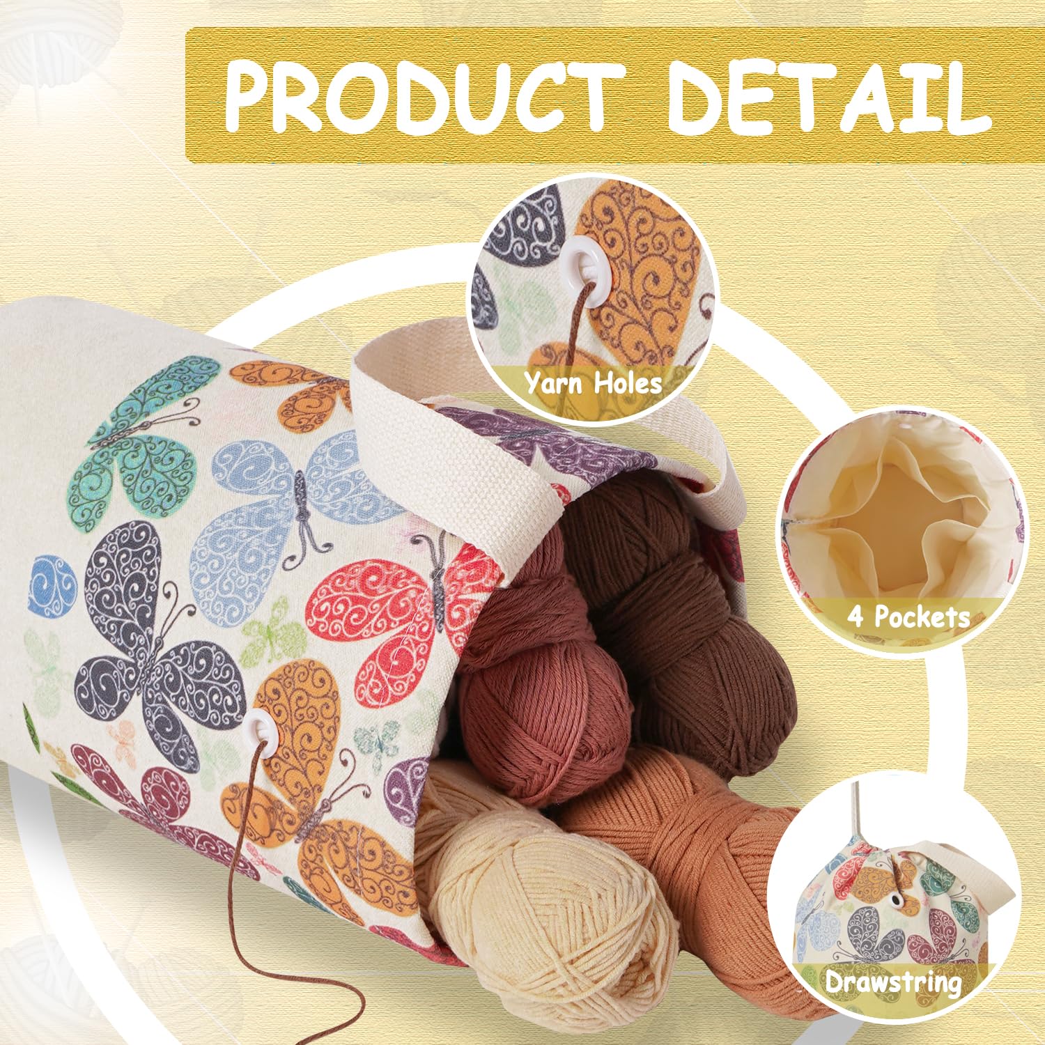 Yarn Bag, Knitting Crochet Bag, Portable Yarn Storage Bags Organizer for Crocheting Project, Store Skein Ball, Short Knitting Needle (Medium, Butterfly)