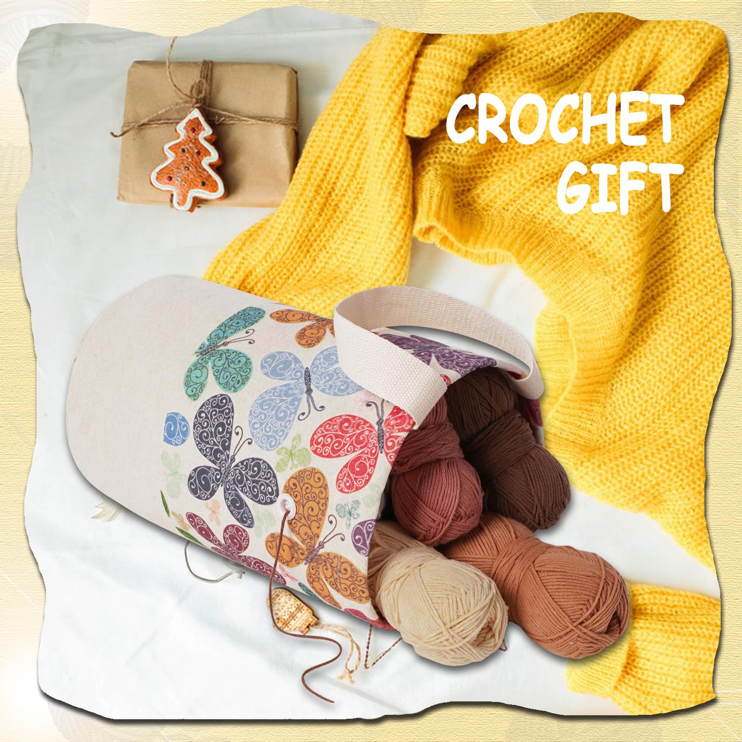 - Humanized Design - The crochet bag is made of durable canvas. And The top is a drawstring closure, firmly closing the yarn bag to prevent the yarn from falling out. There are two holes on the side of this yarn storage organizer, convenient to put the yarn through the yarn holes and prevent yarn from tangling.